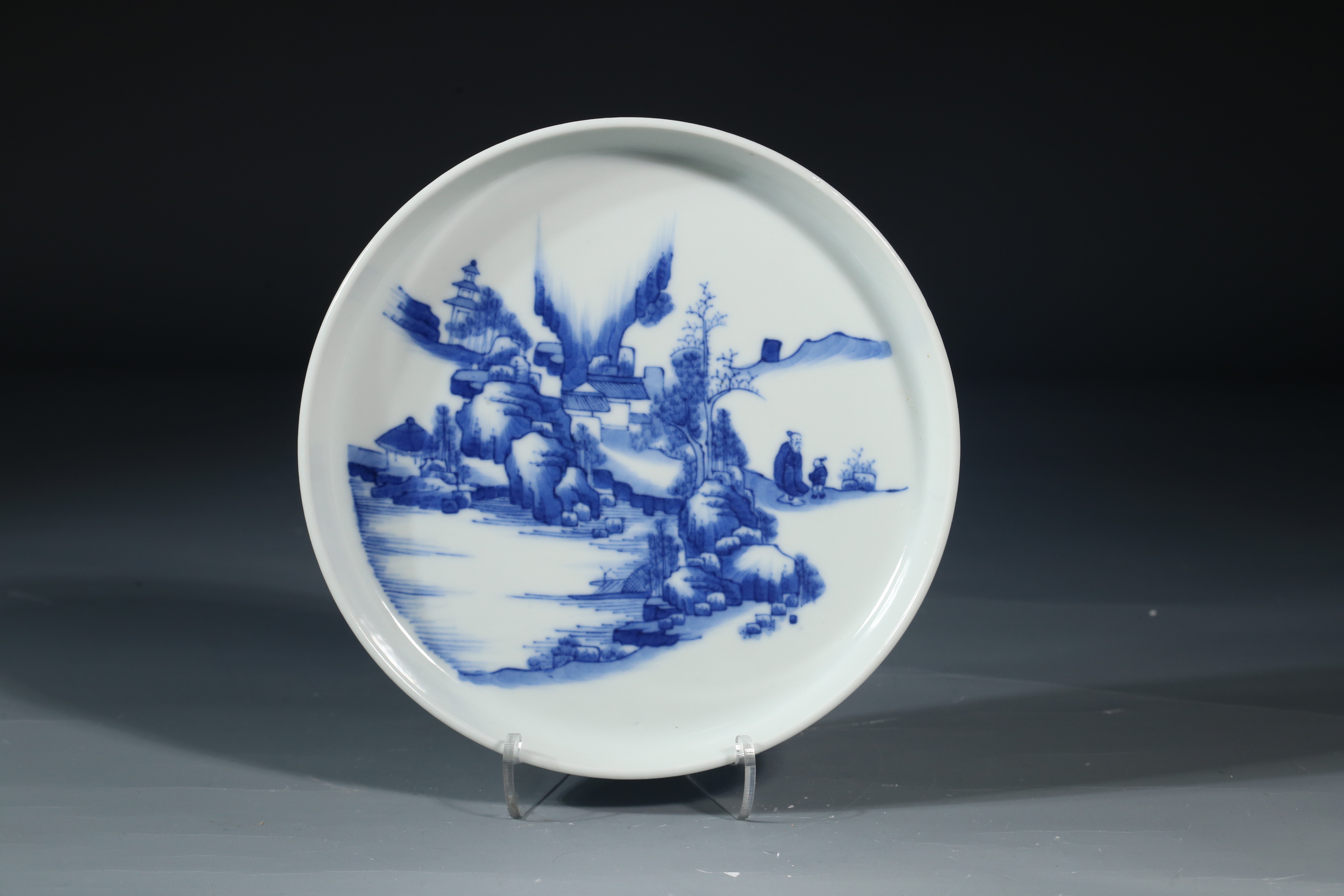 2507 青花山水高士图纹镗锣洗
