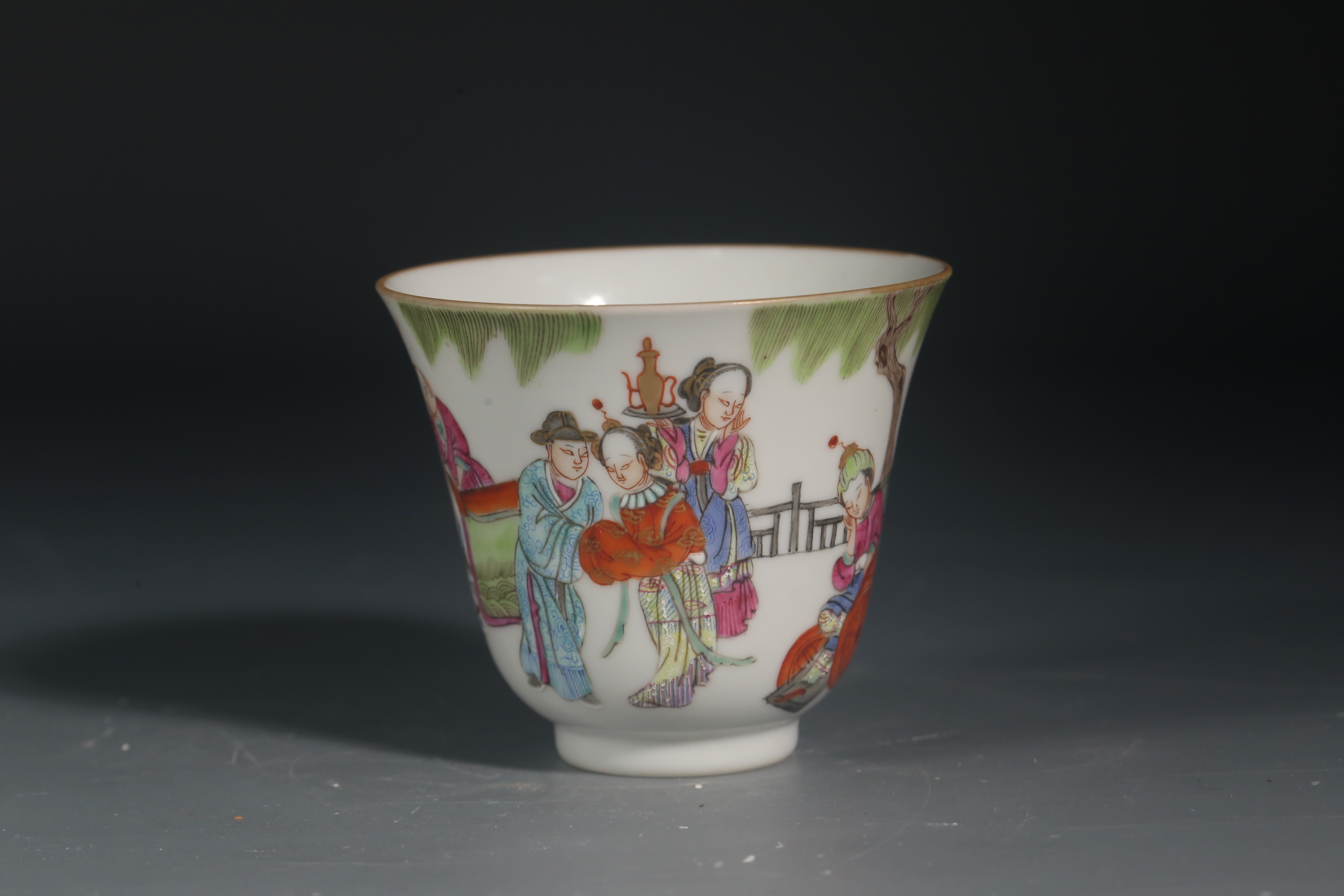 2510 粉彩西厢记图纹铃铛杯