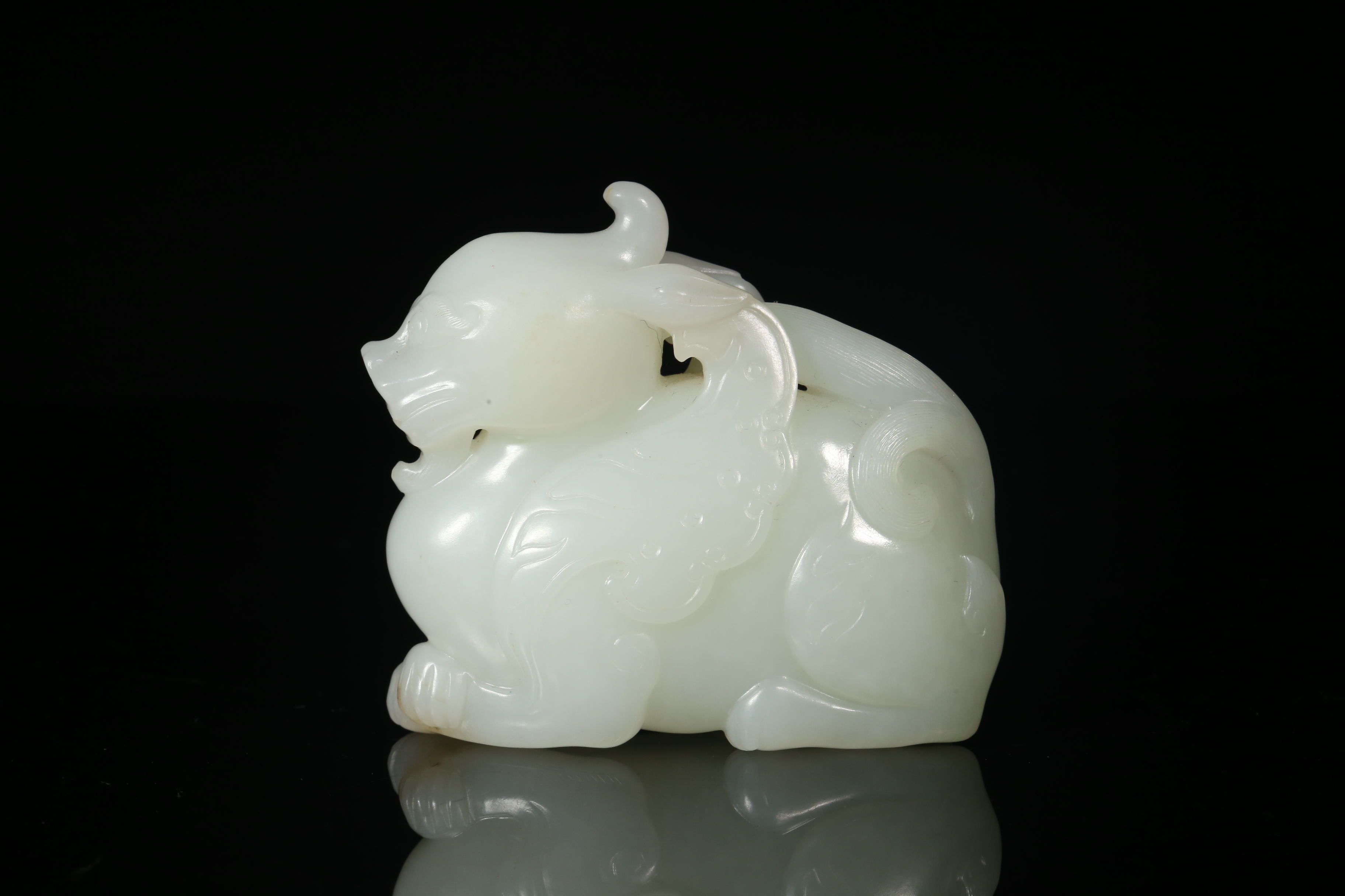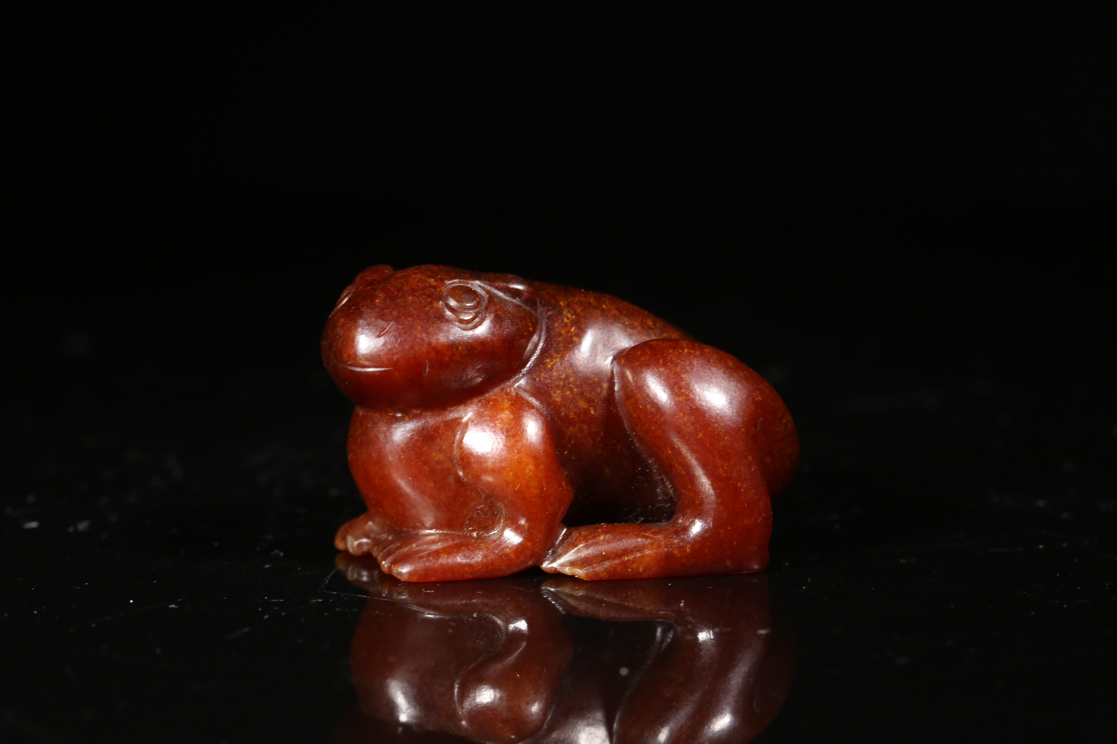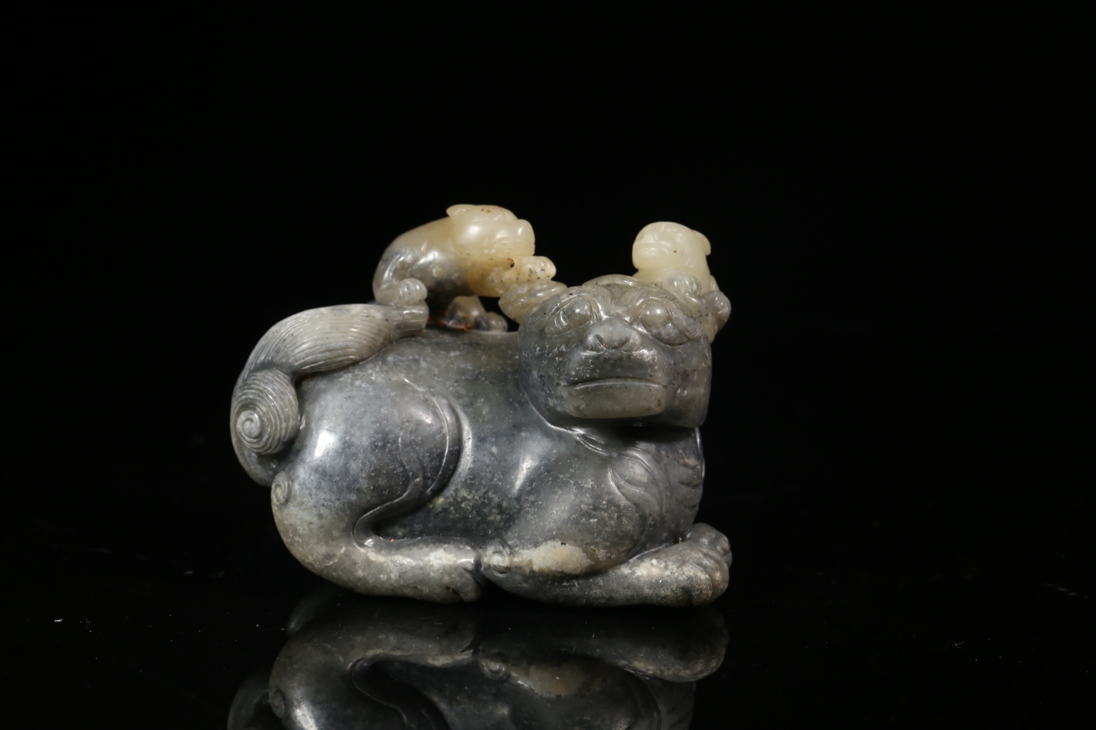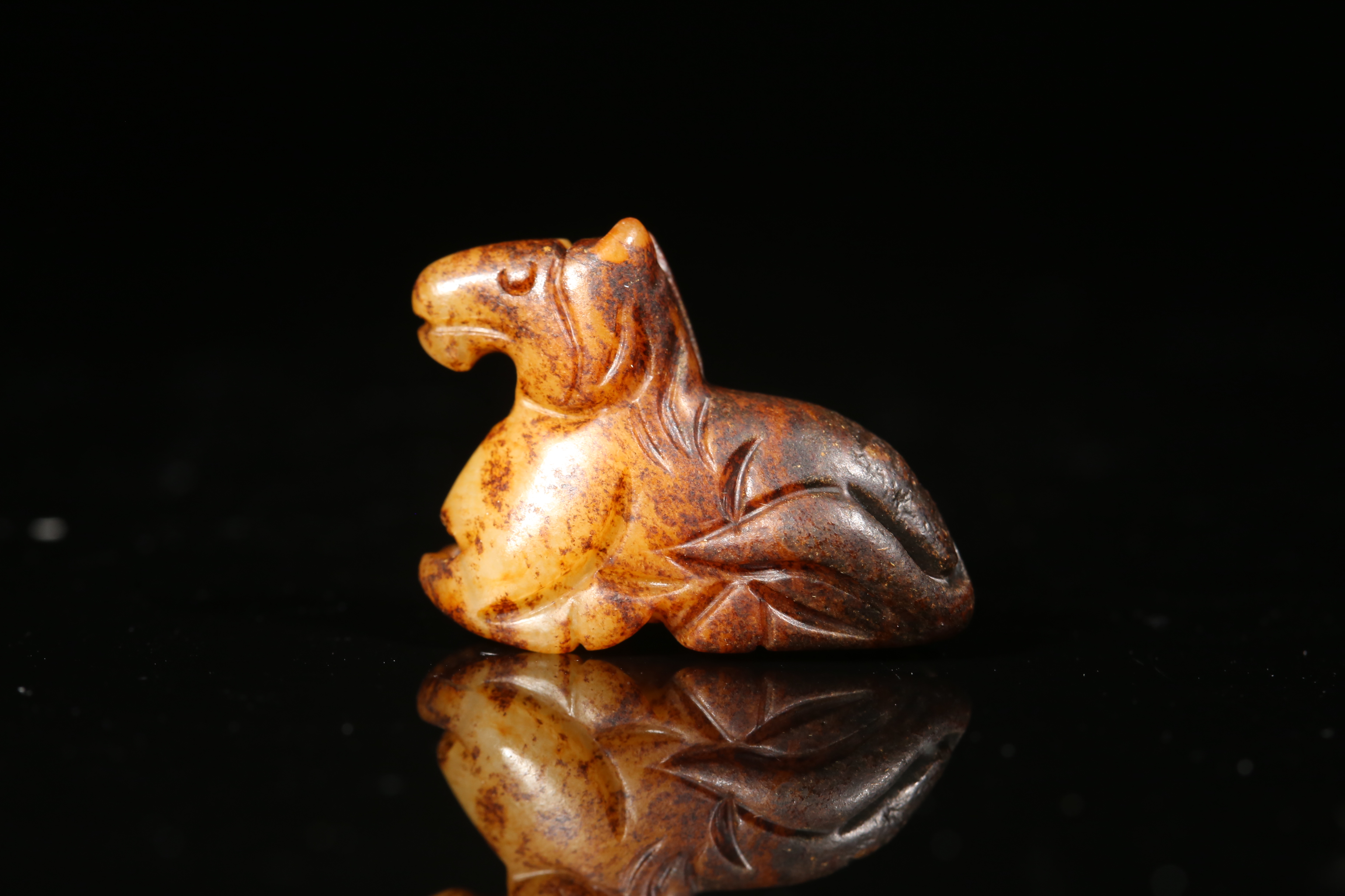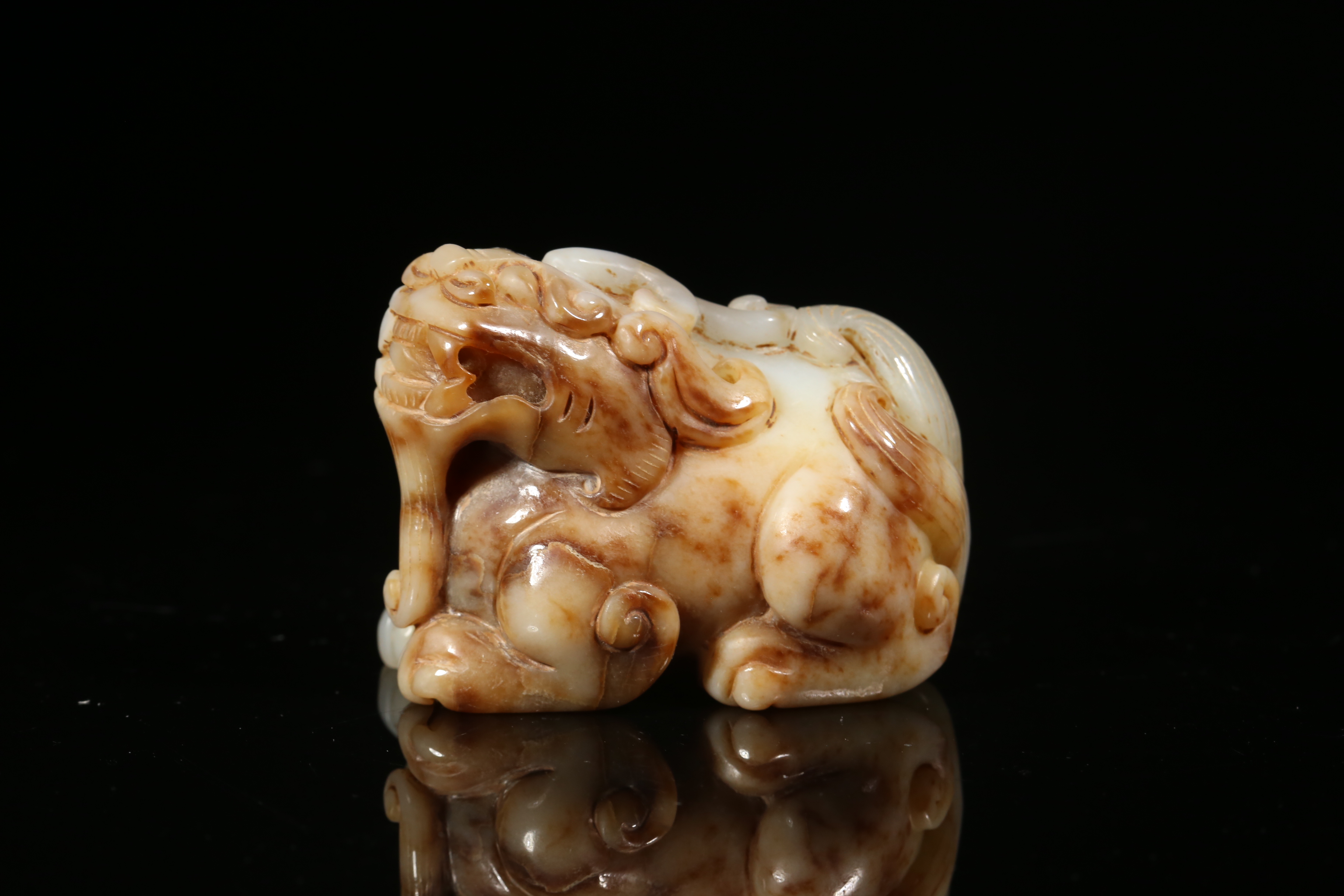 3533 白玉带皮巧雕瑞兽挂件三件一组