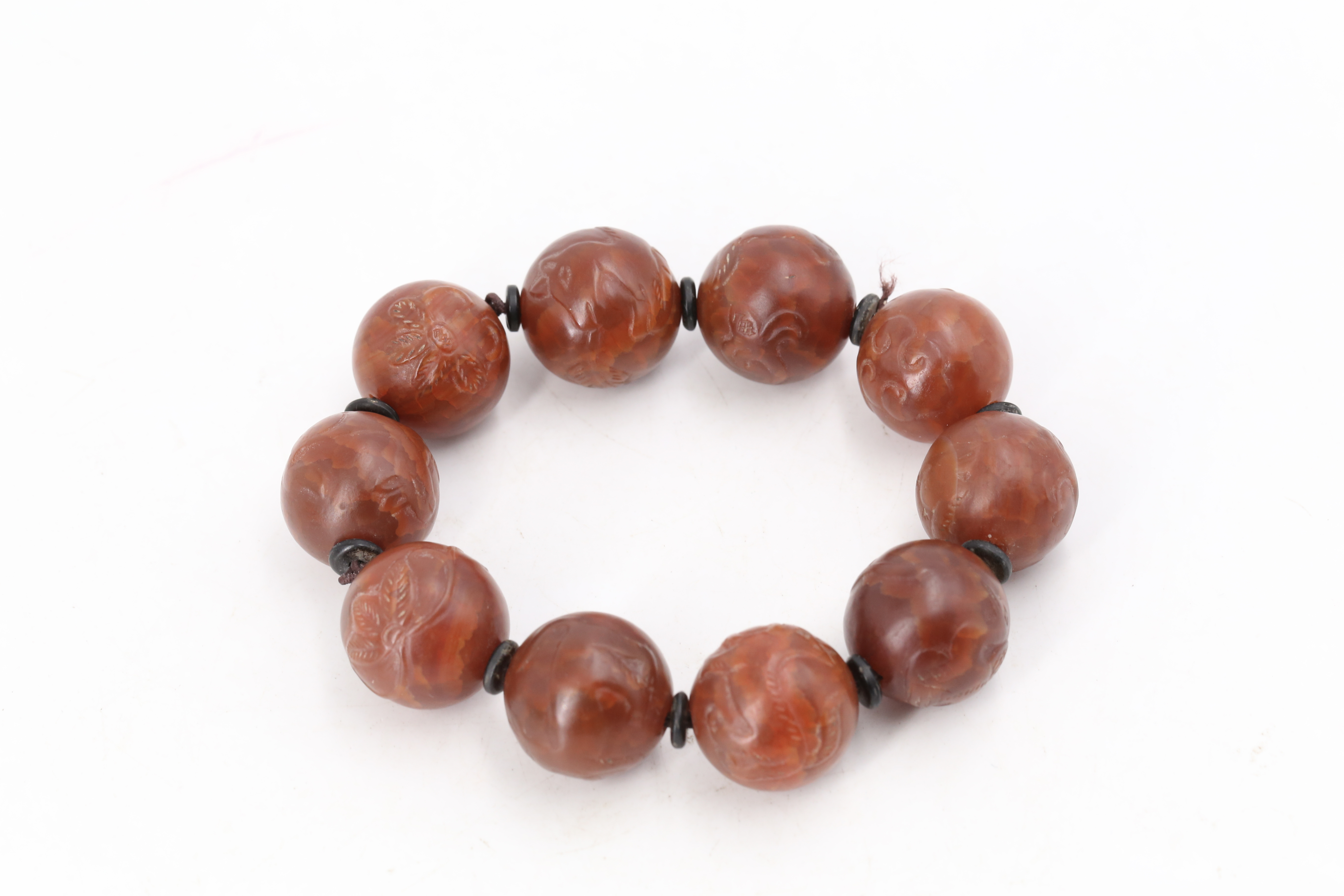 2114 红玛瑙浮雕瑞兽花鸟纹珠手串