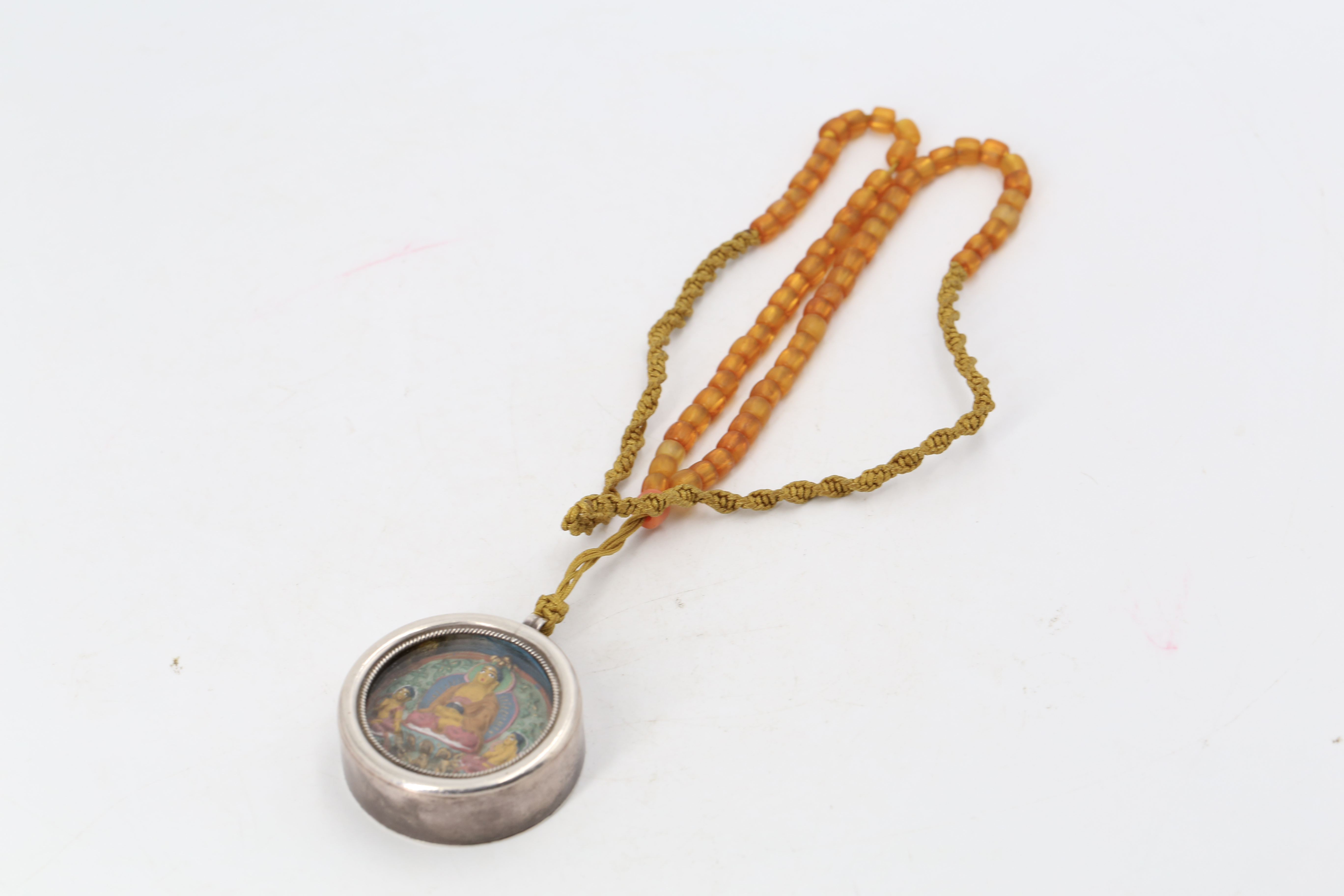 2126 藏传银包加彩三圣佛嘎呜盒