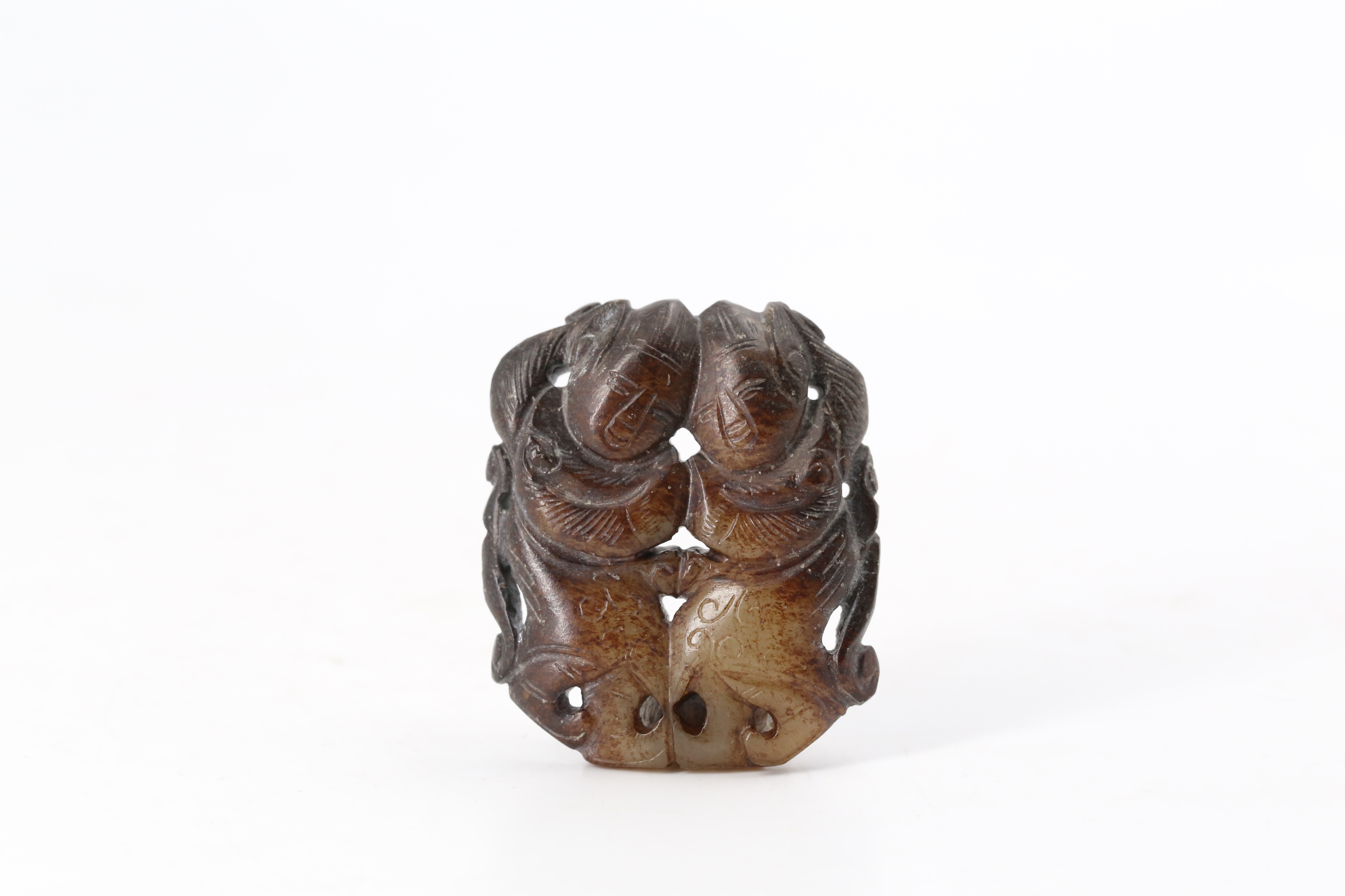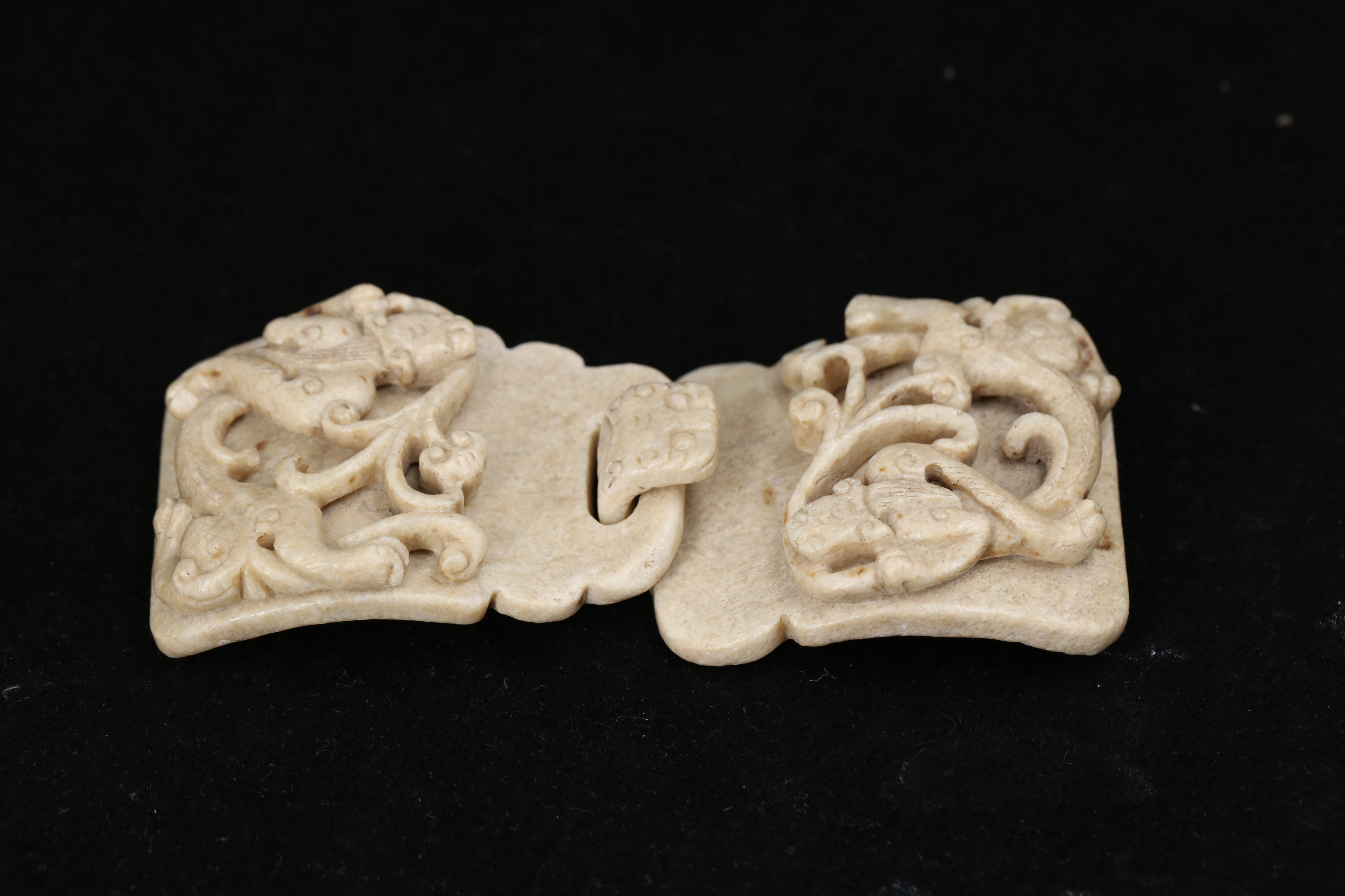 2156 火烧玉高浮雕螭龙纹带扣一套