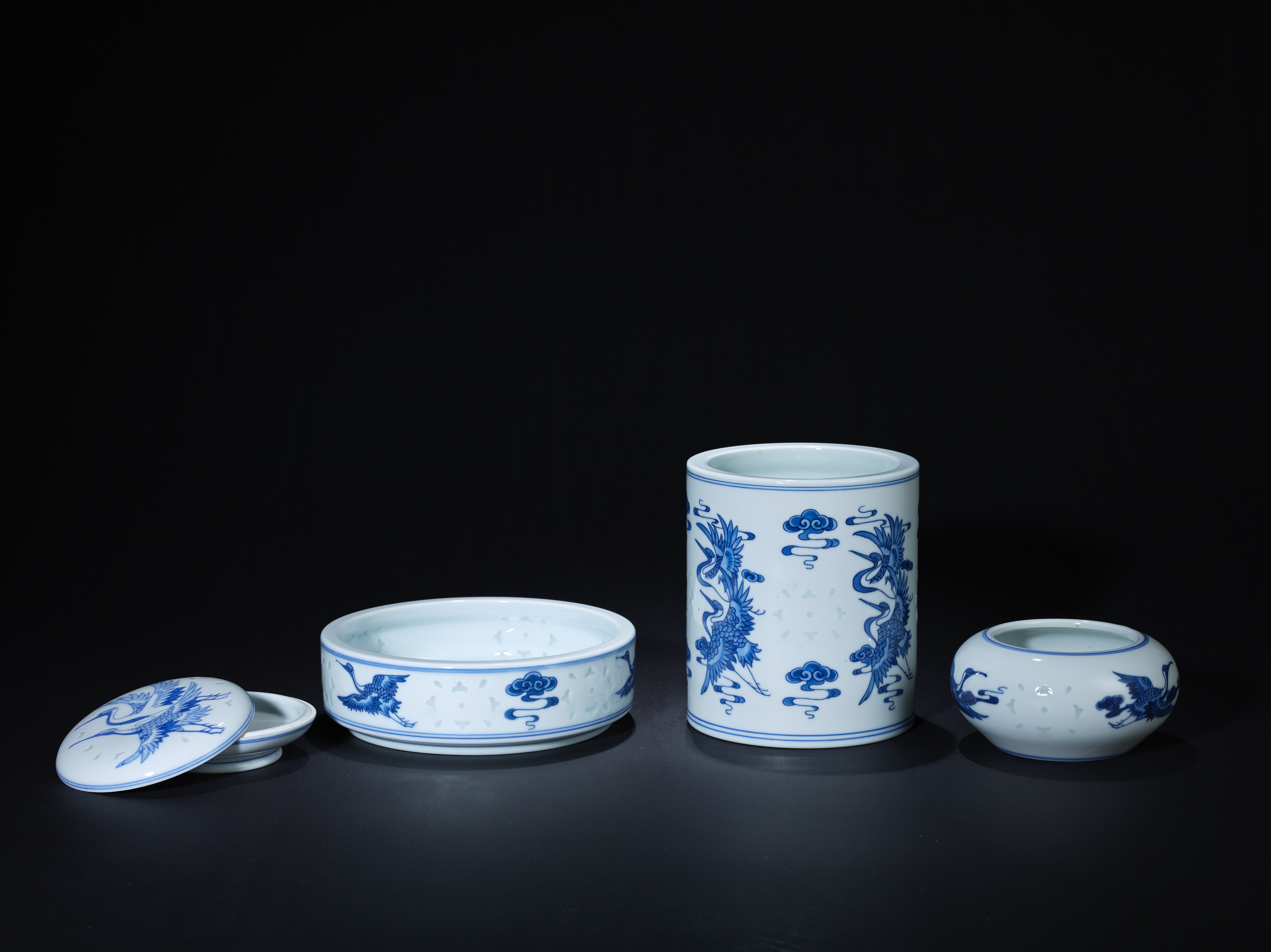 8007 青花玲珑云鹤图文房四件套