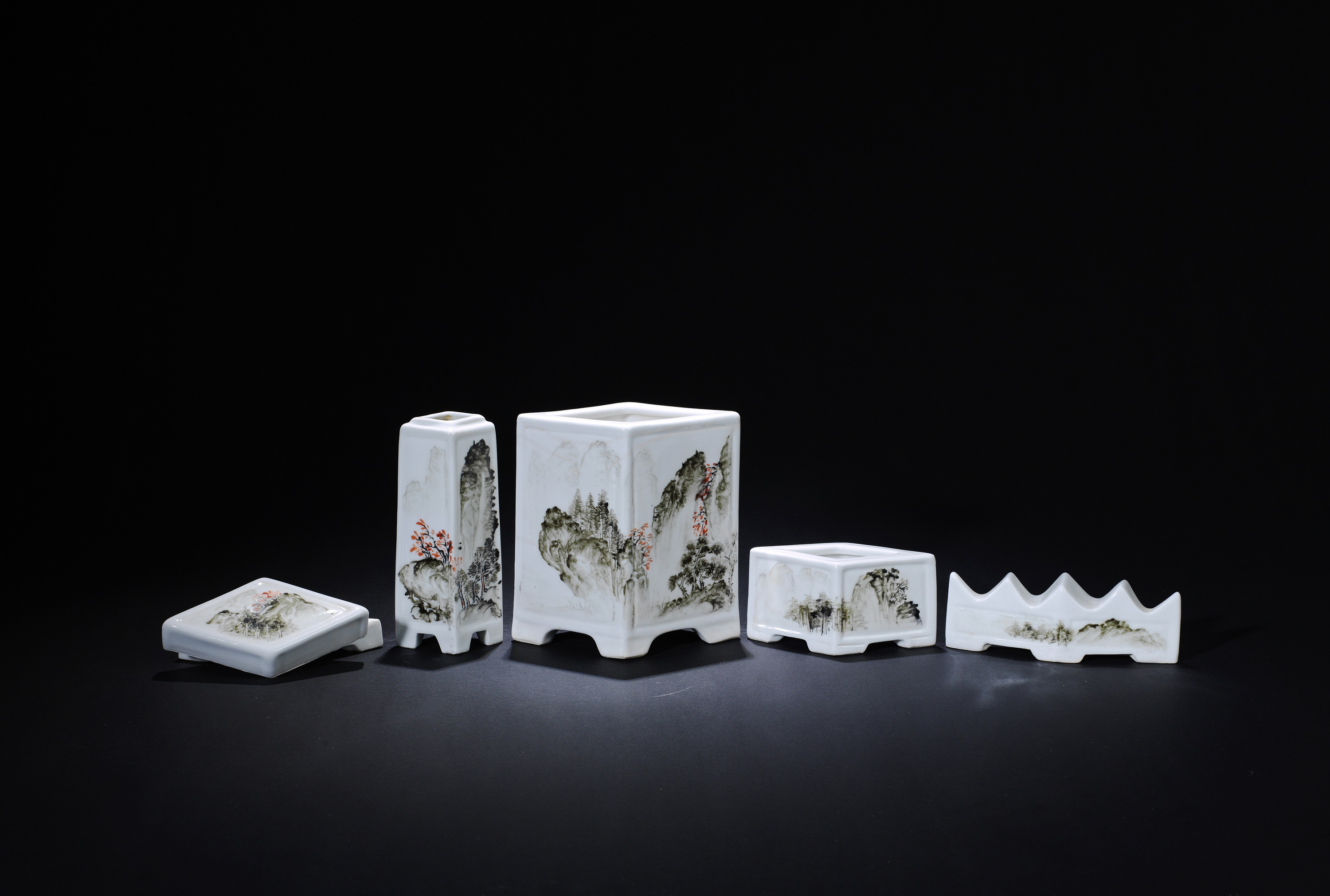 8009 粉彩山水文房五件套