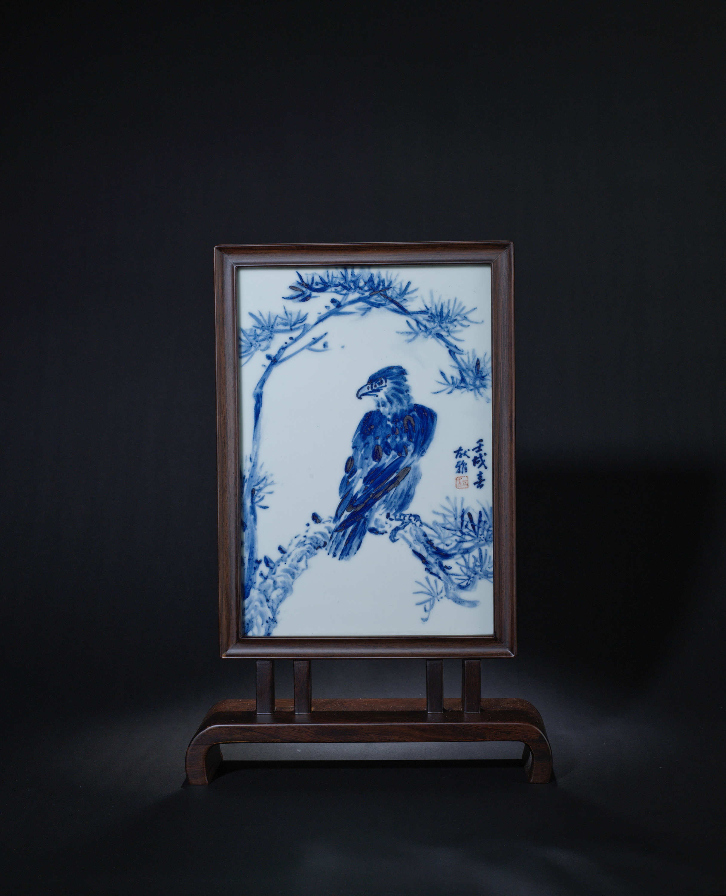 8011 胡献雅青花松鹰图瓷板