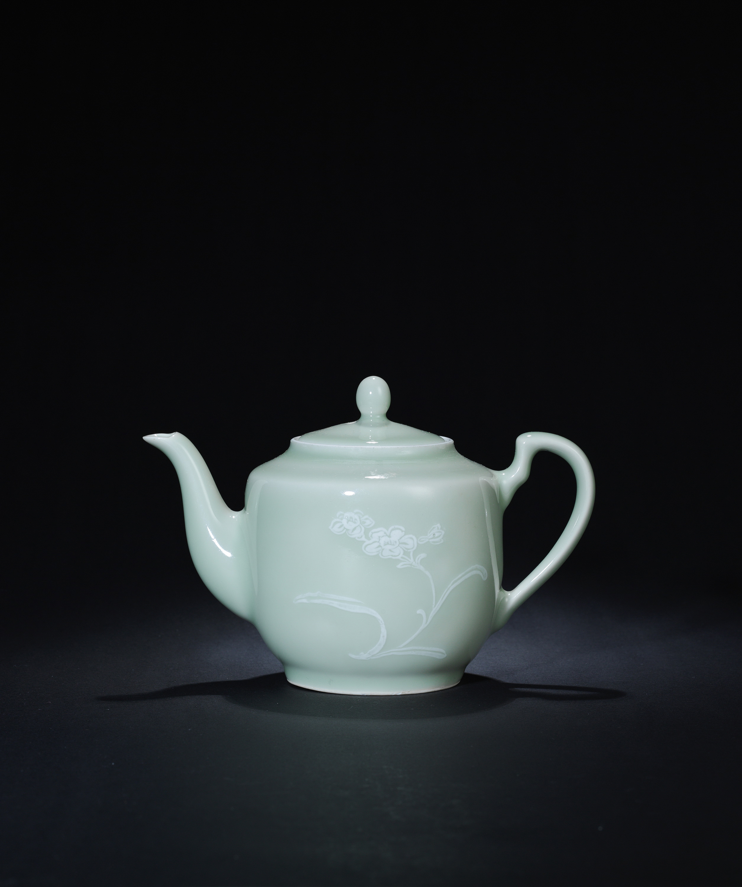8014 粉青釉堆白水仙图壶
