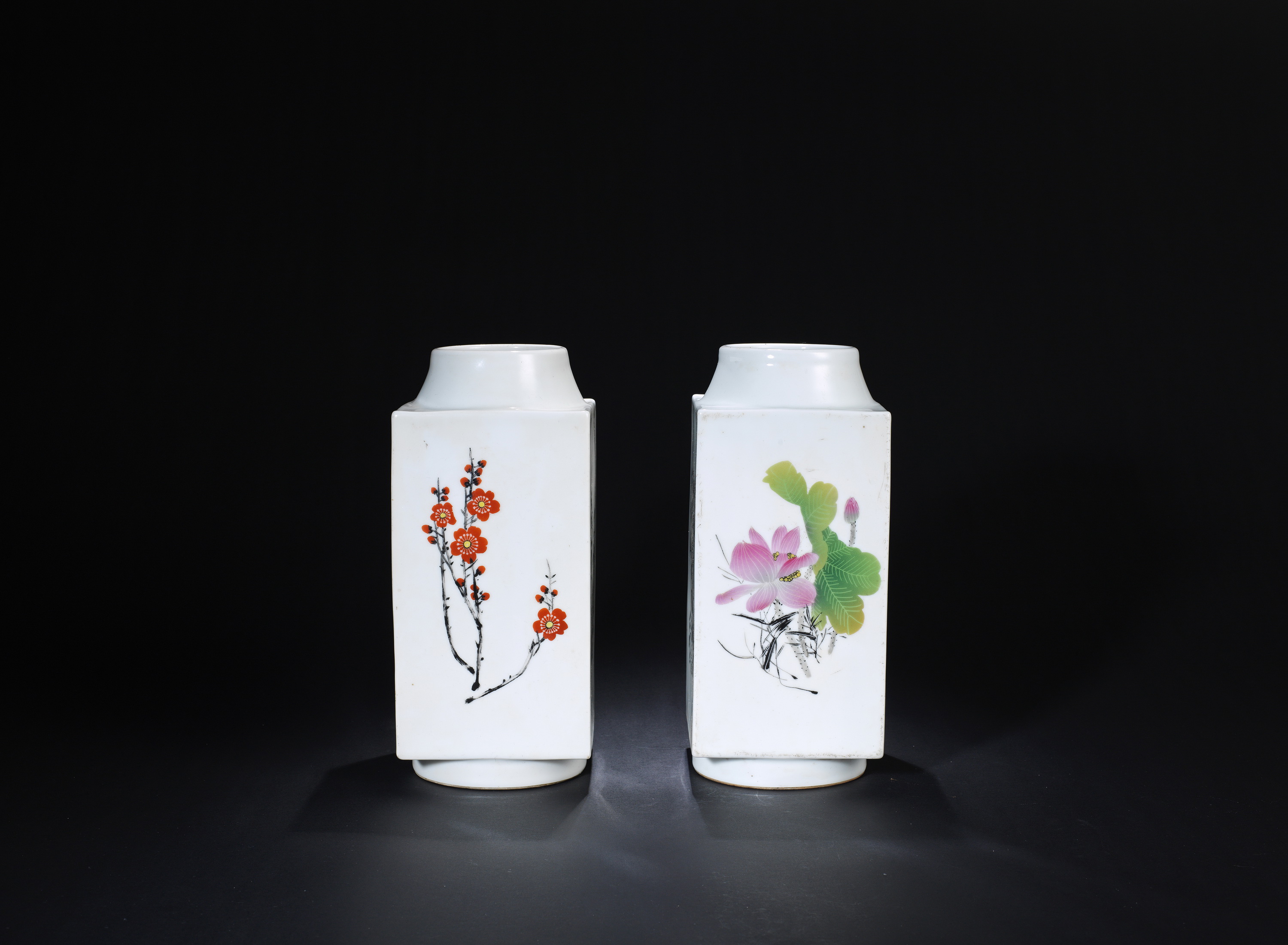 8016 陈先水风格花卉四季图琮式瓶一对