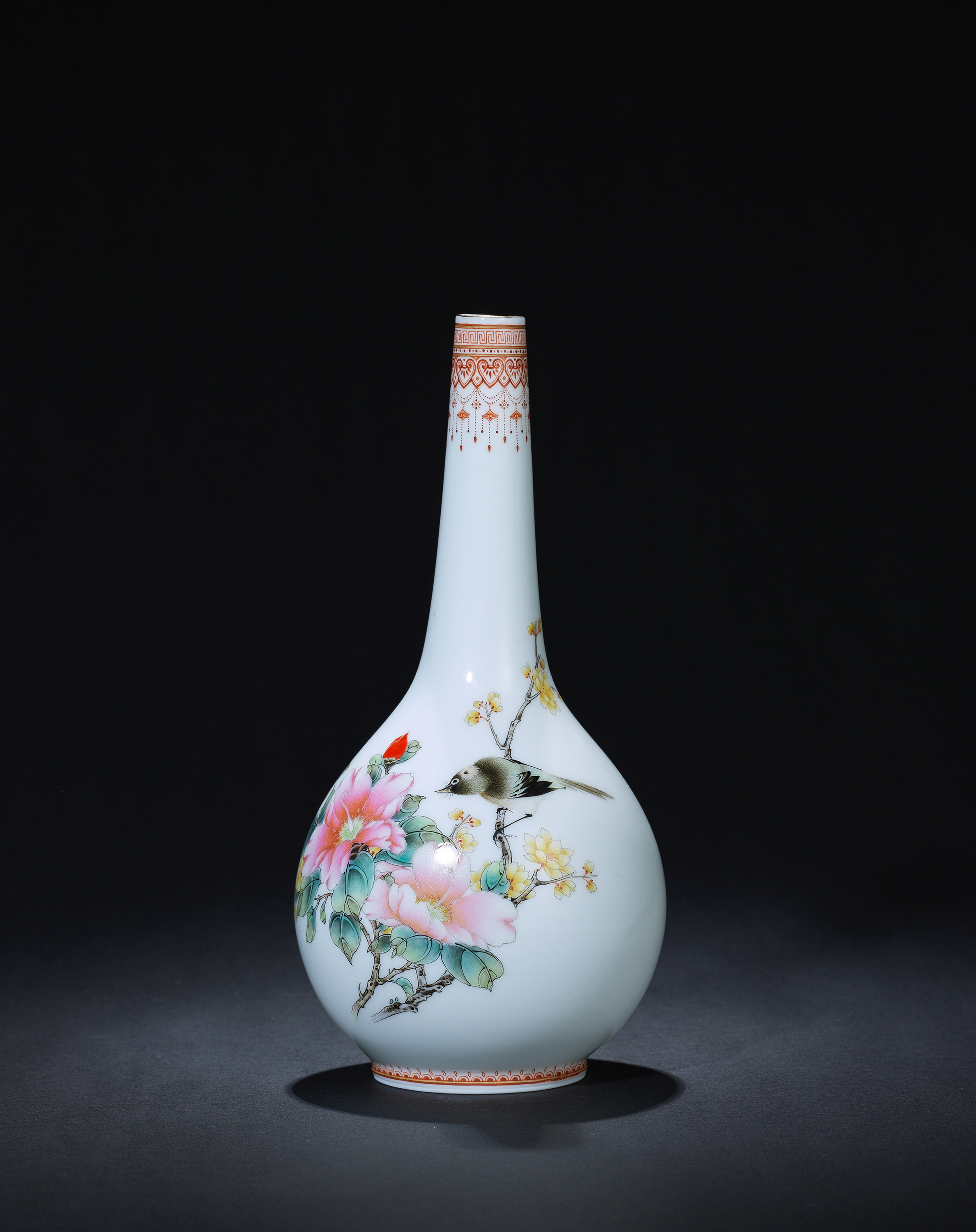 8018 粉彩花鸟薄胎胆瓶