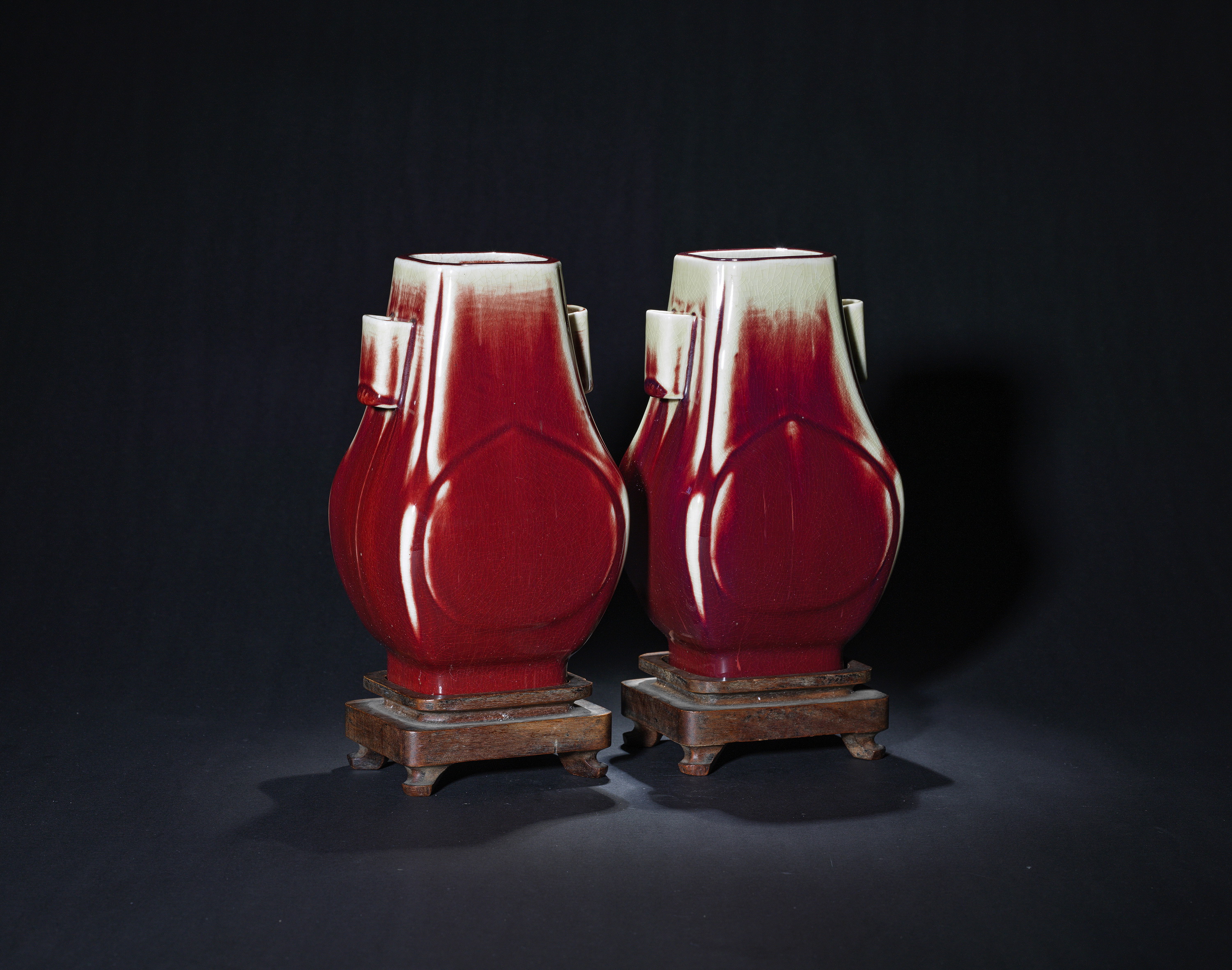 8020 郎窑红贯耳瓶一对