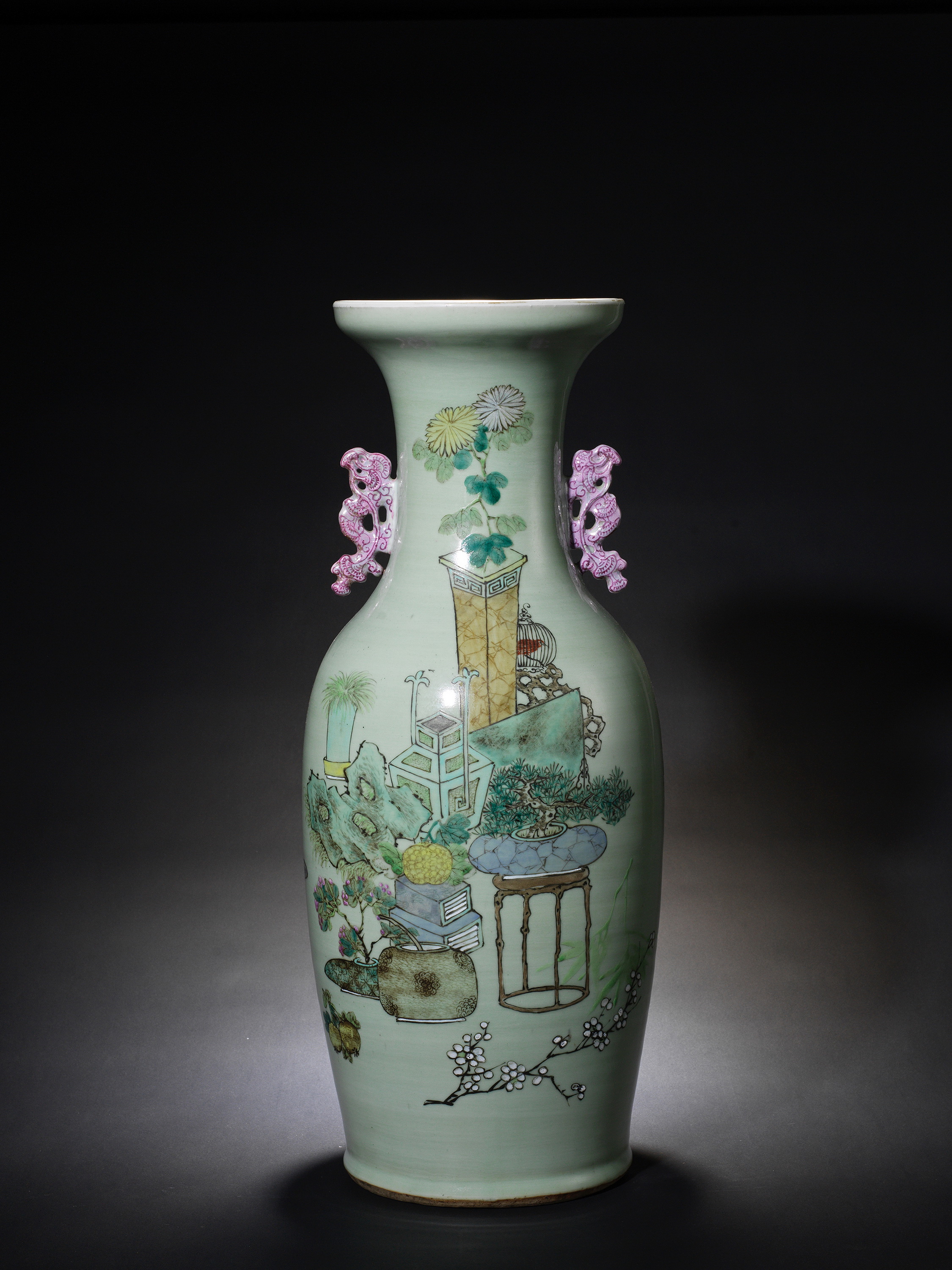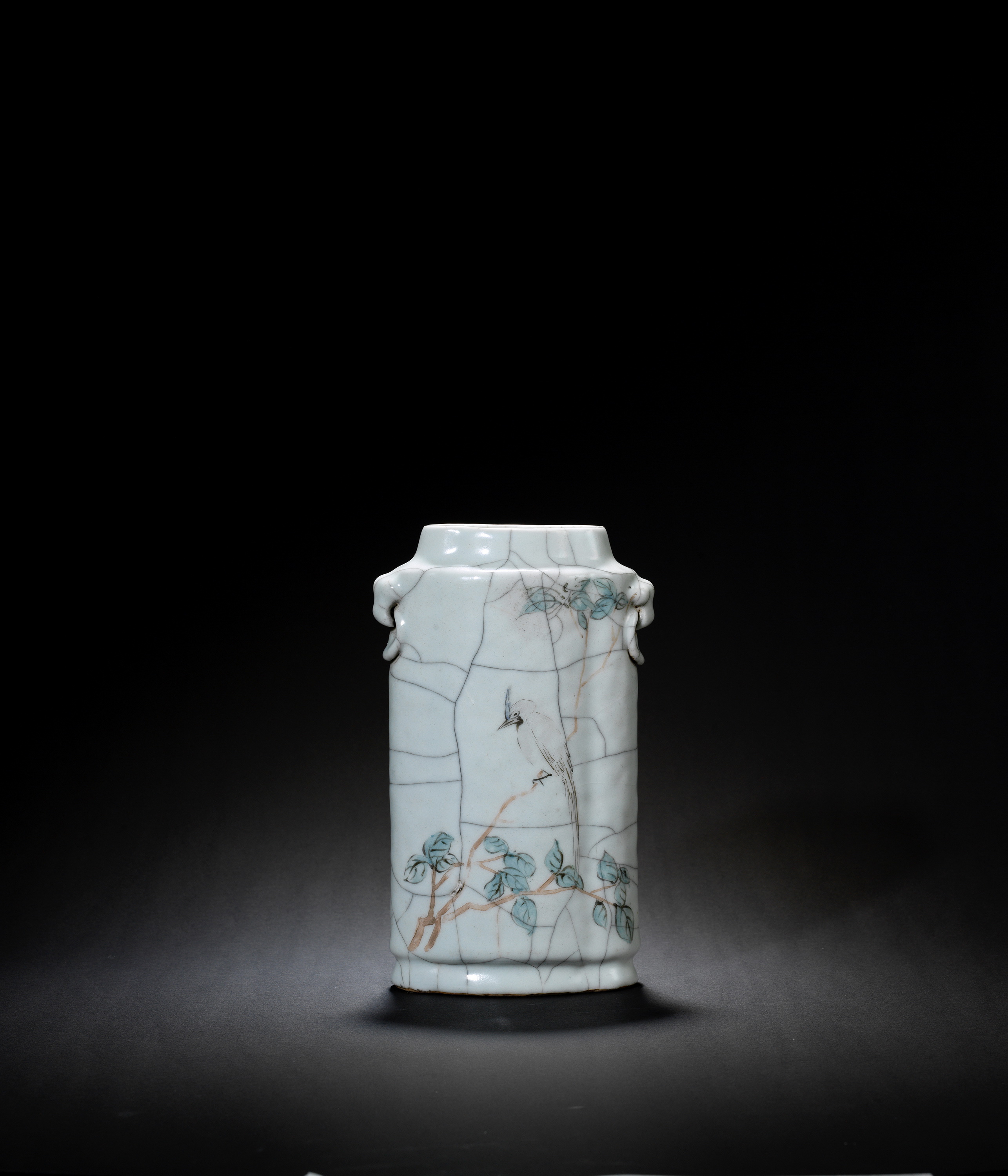 8301 哥釉开片浅绛彩兽耳海棠瓶