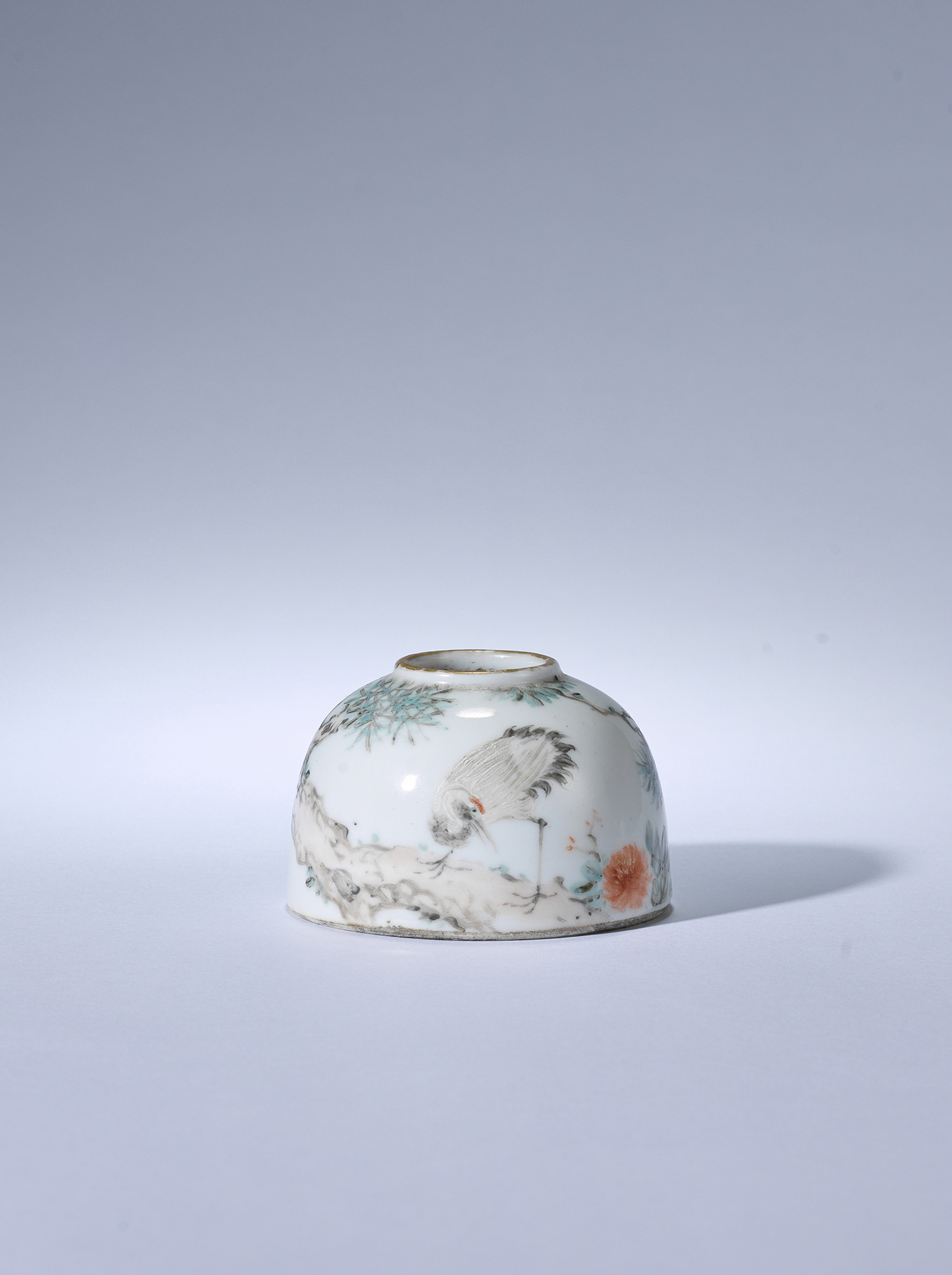 8302 罗旸谷浅绛彩松鹤图马蹄形水盂