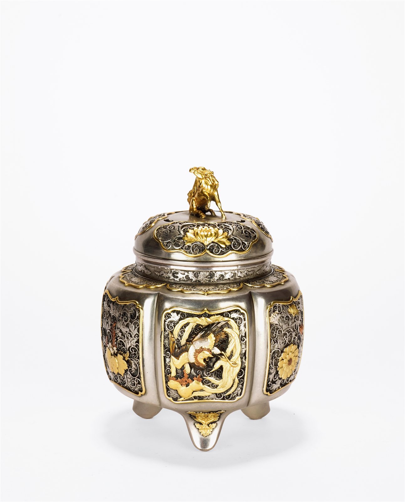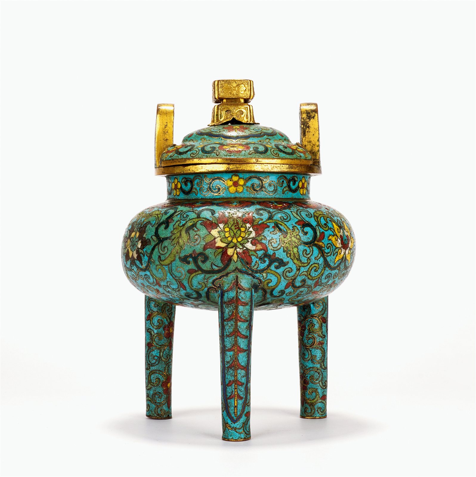 164 铜鎏金掐丝珐琅兽面纹狮钮鼎式炉