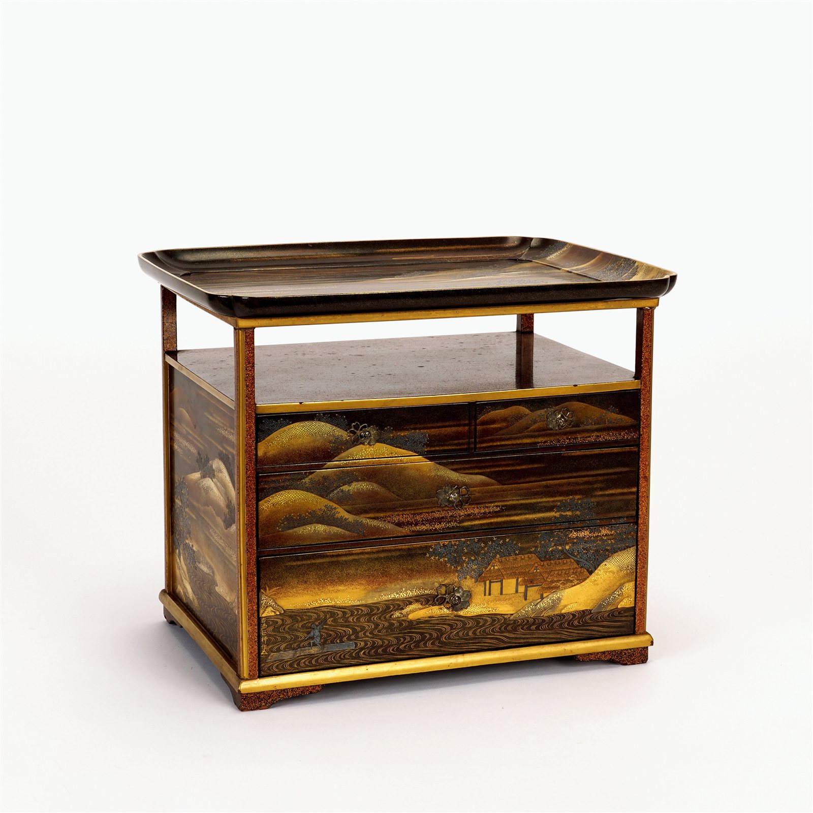 147 古满巨柳作莳绘山水楼阁图箪笥