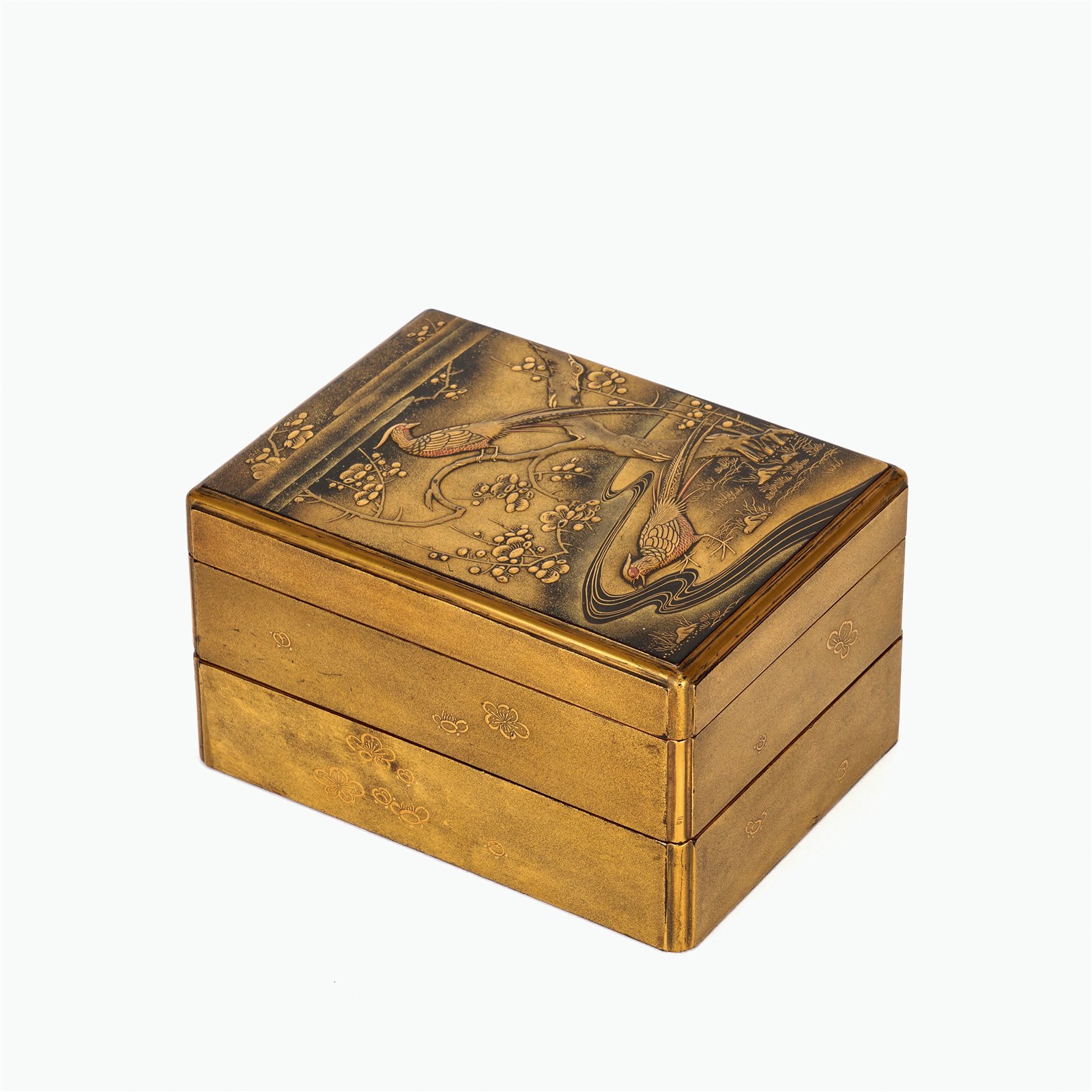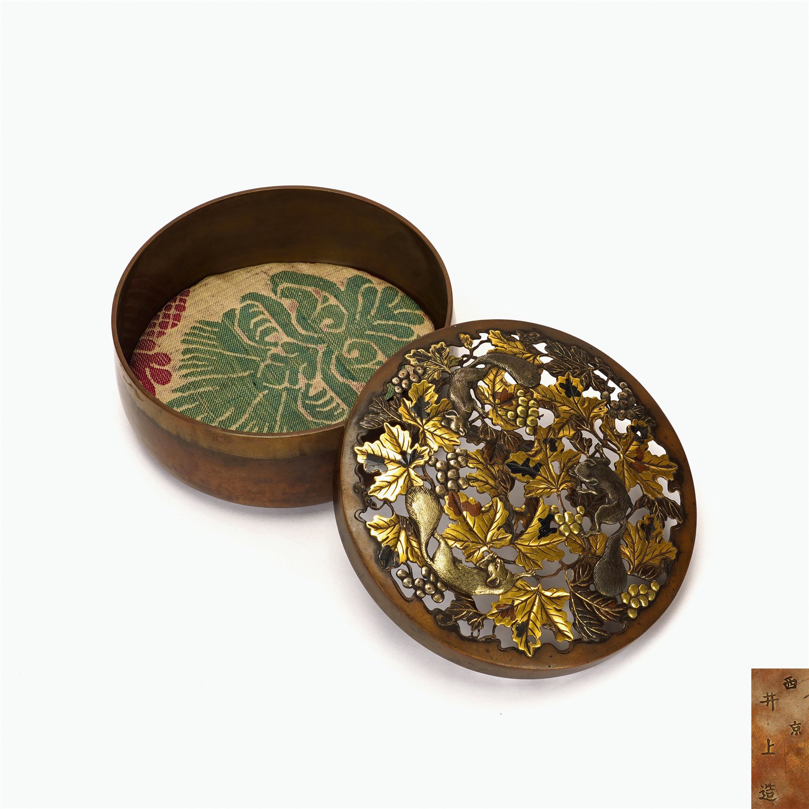 149 井上造铜金银象嵌镂雕松鼠葡萄纹大香盒