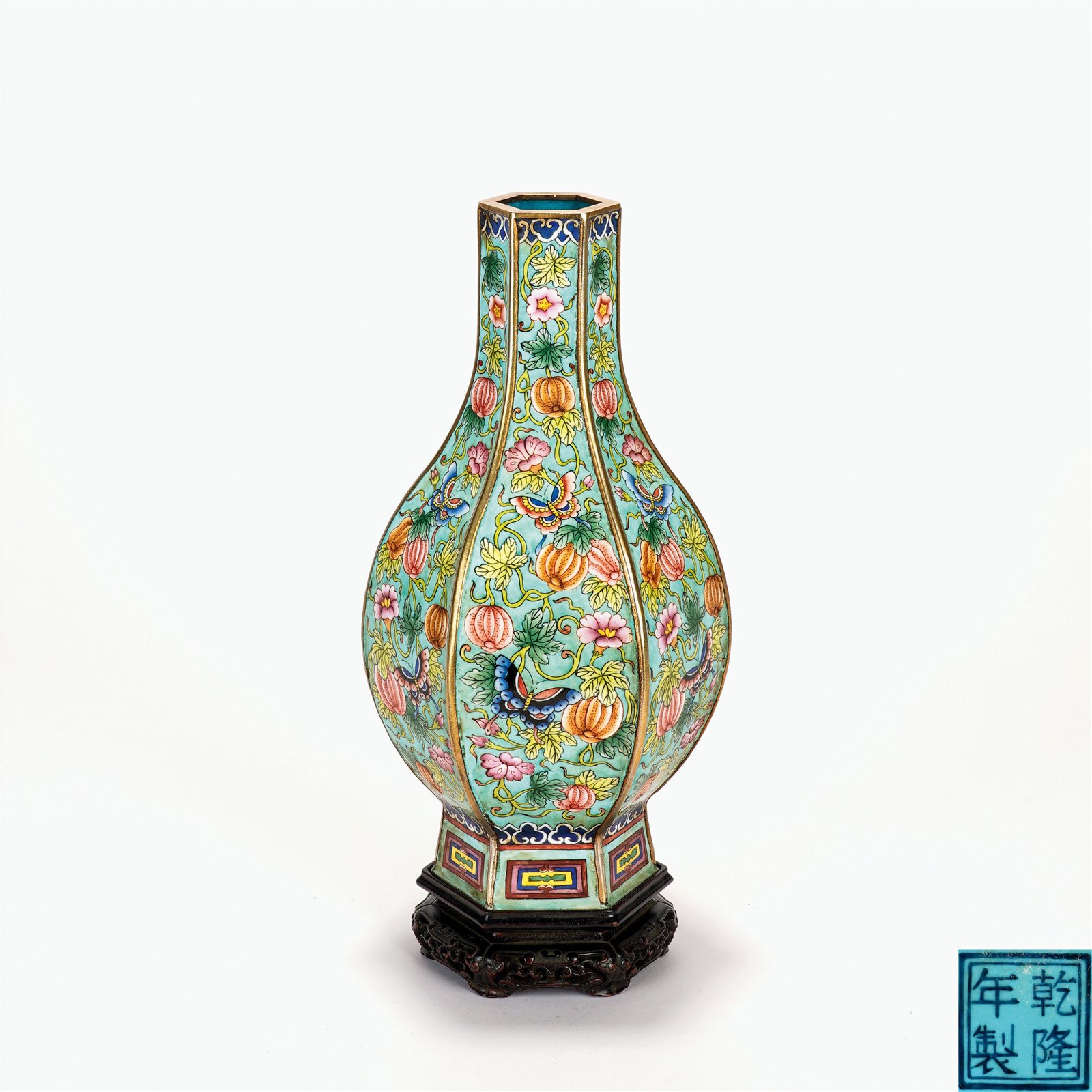 155 铜胎画珐琅瓜瓞绵绵六楞赏瓶