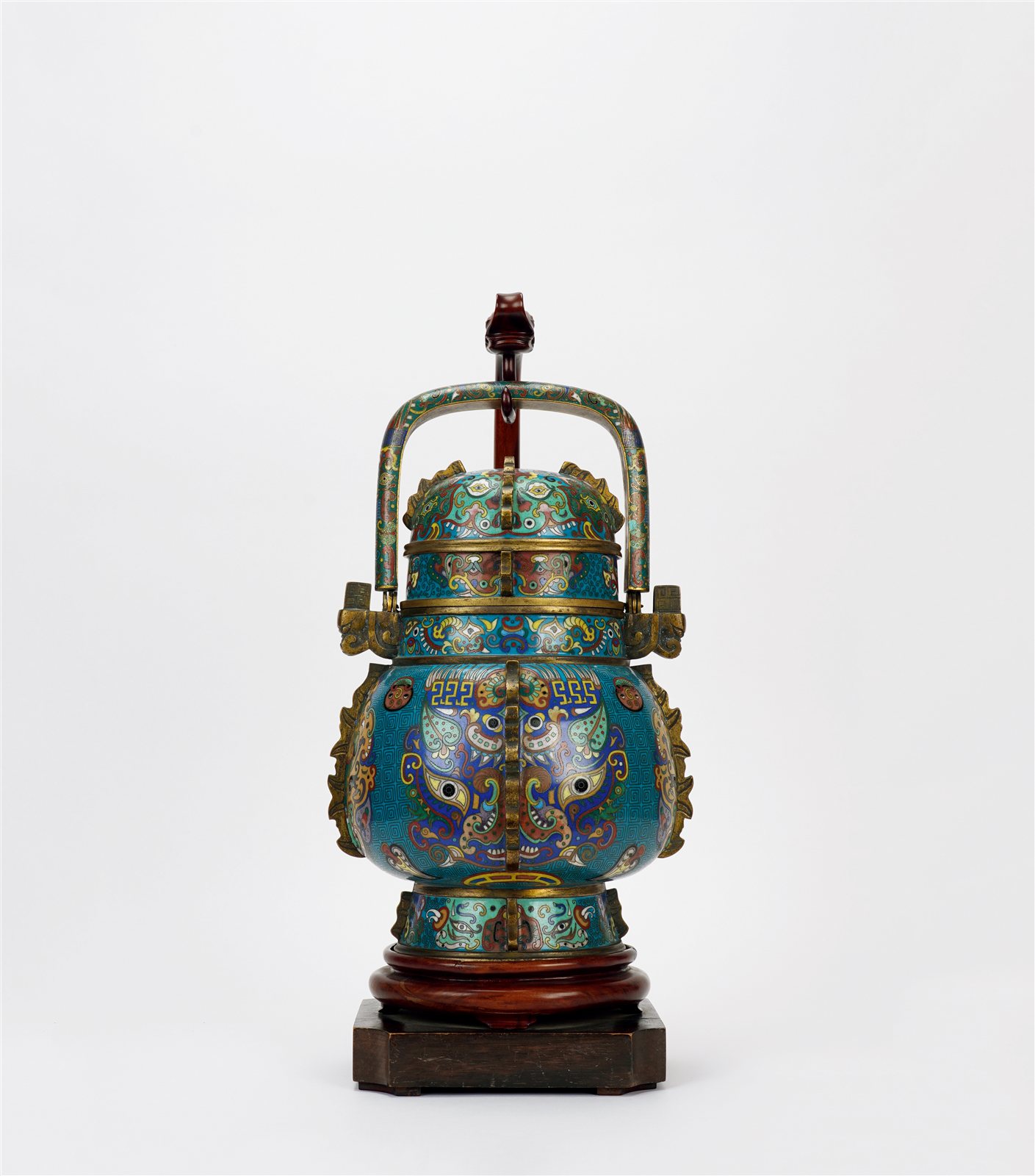 157 铜胎掐丝珐琅饕餮纹提梁卣