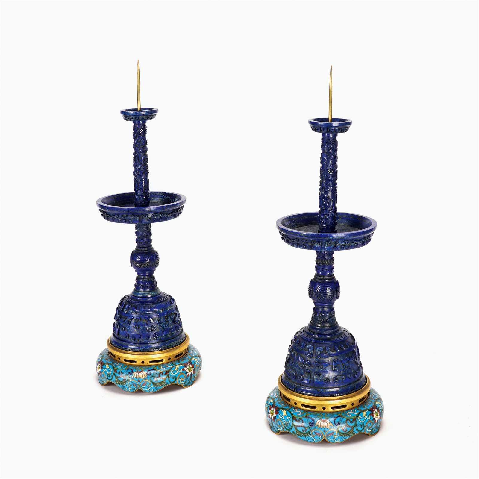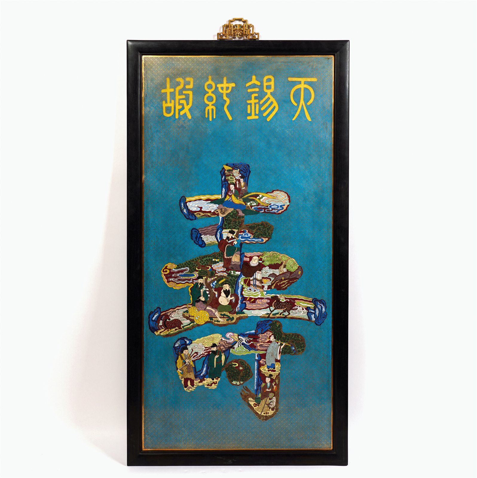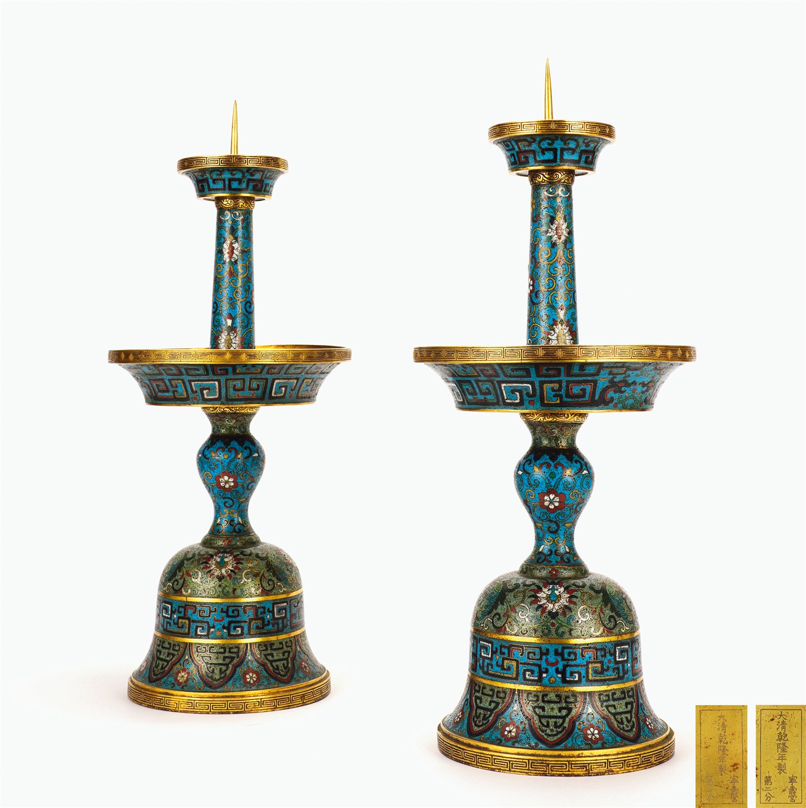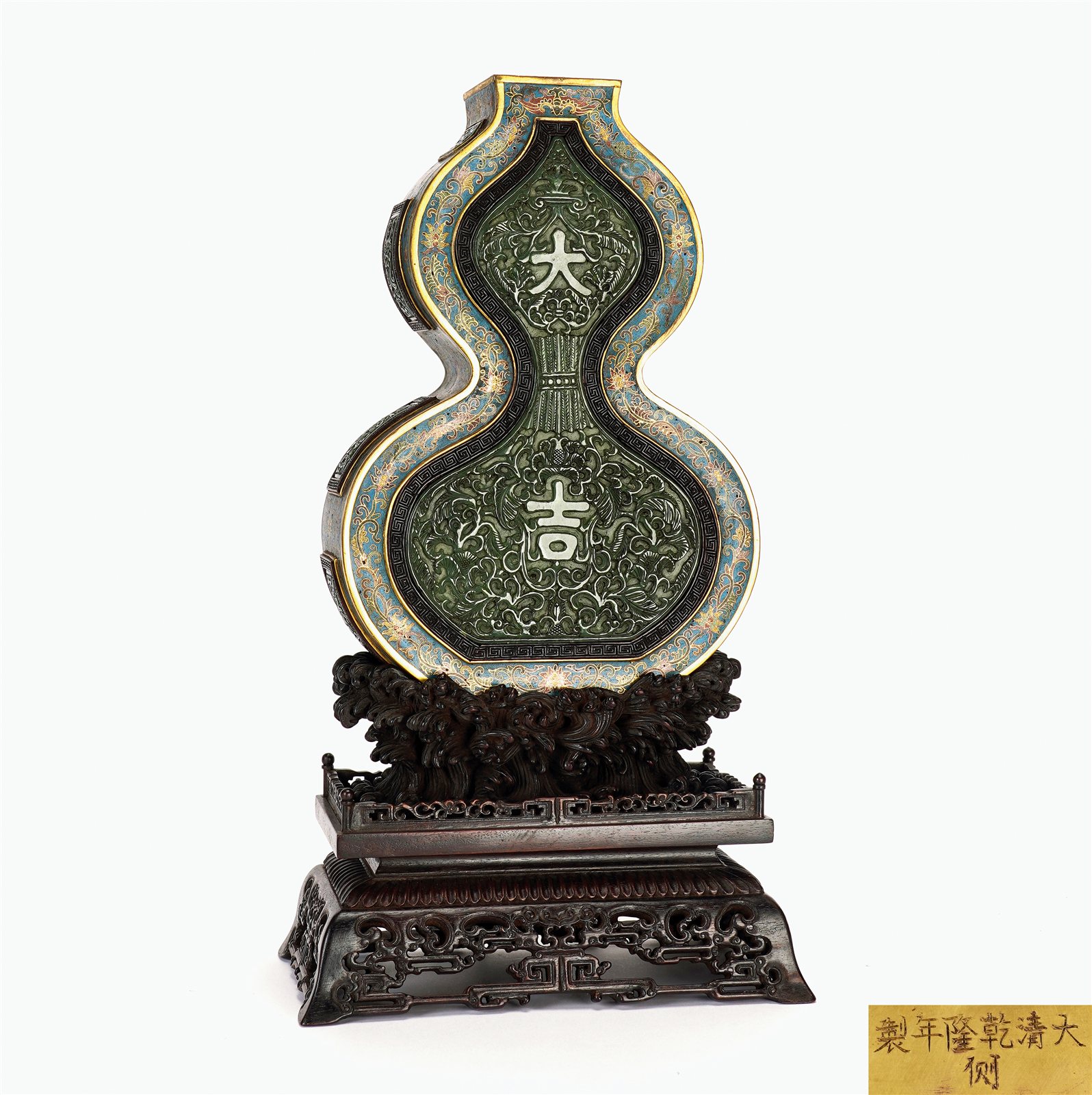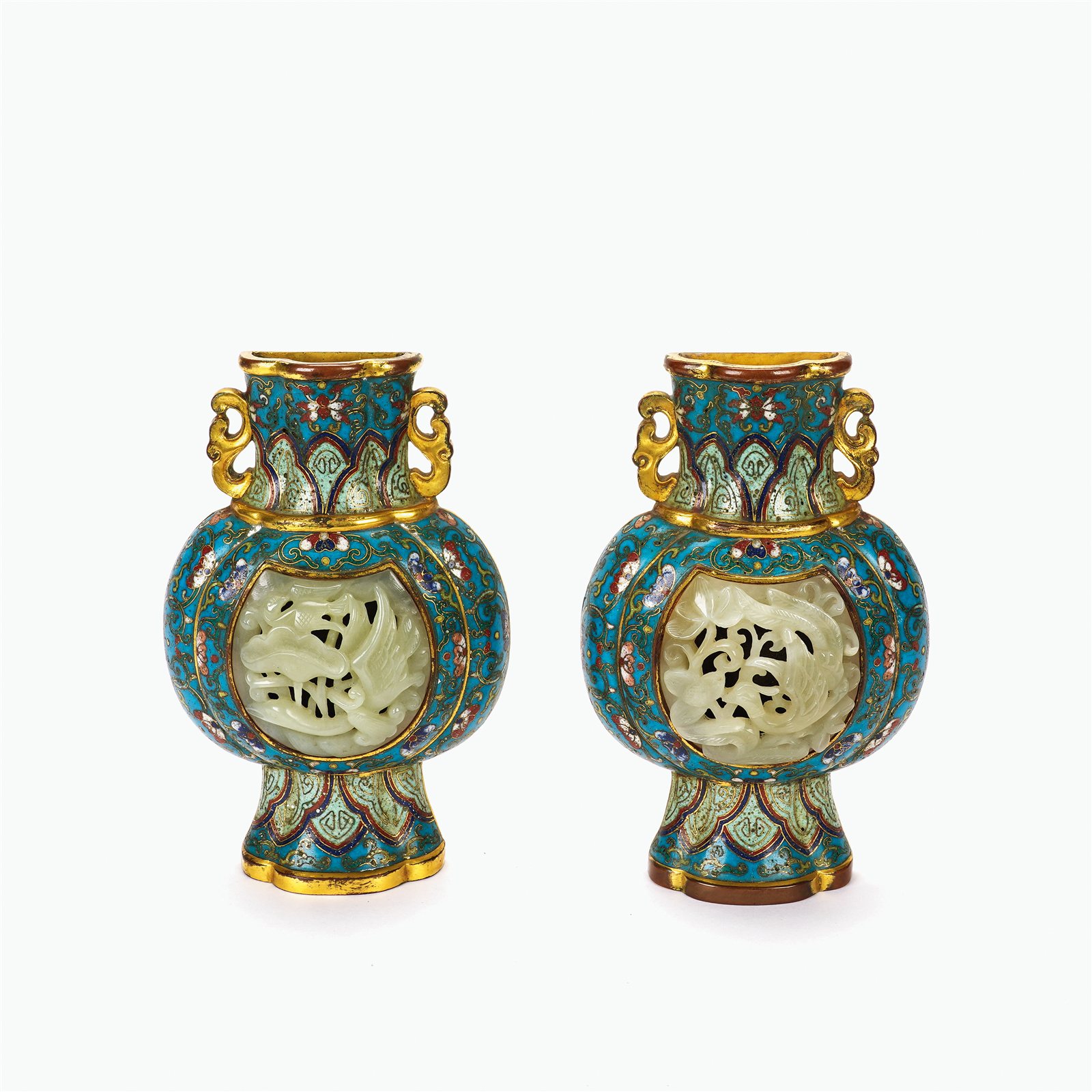 160 掐丝珐琅嵌玉荷趣图壁瓶一对