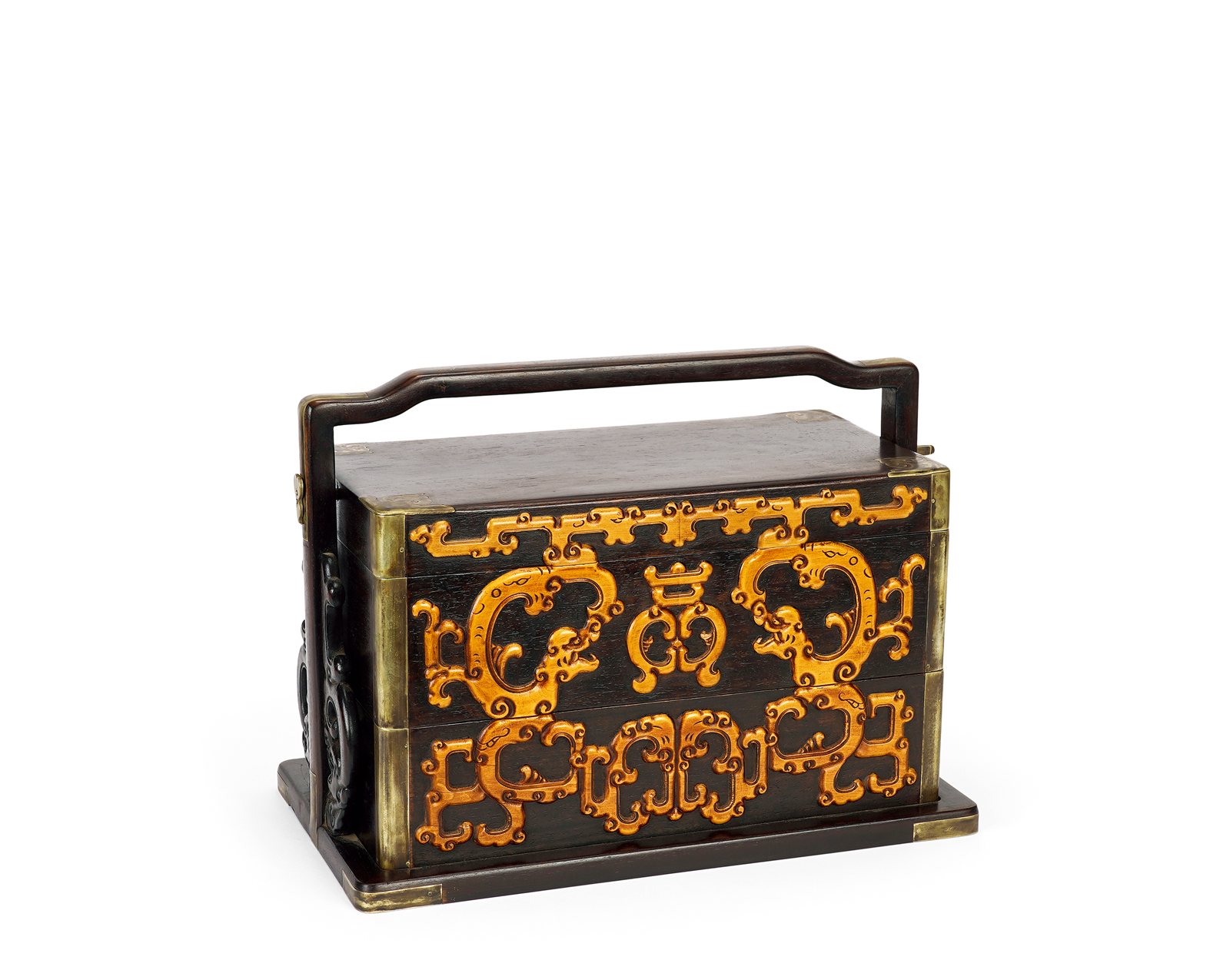 515 紫檀嵌黄杨龙纹提盒