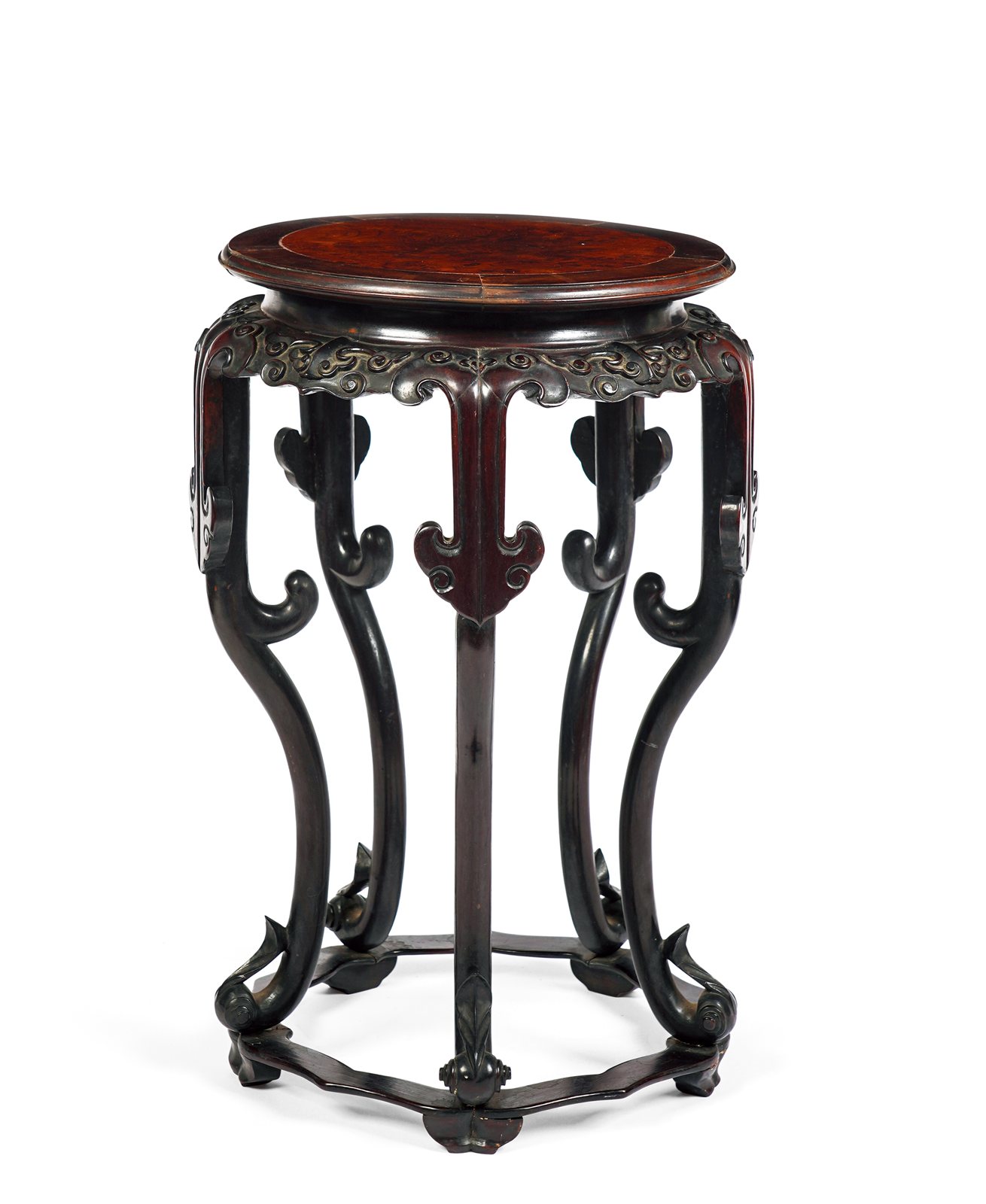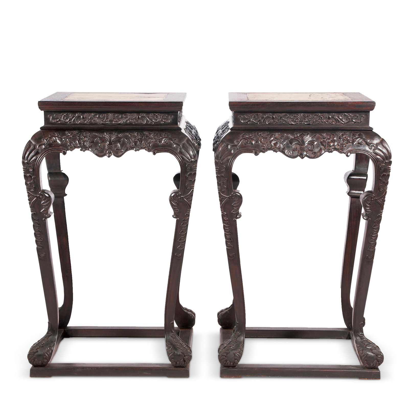524 檀木嵌云石西番莲花几一对