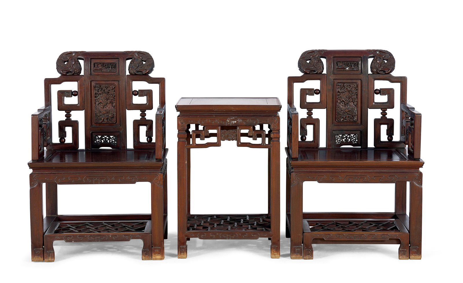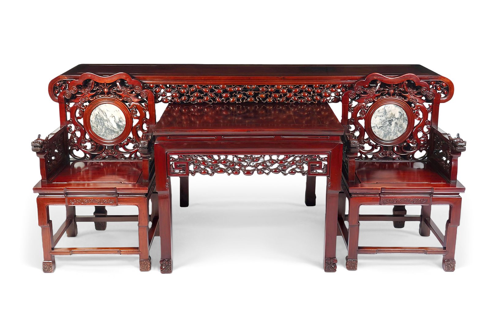 519 红木狮子戏球太师椅一组三件