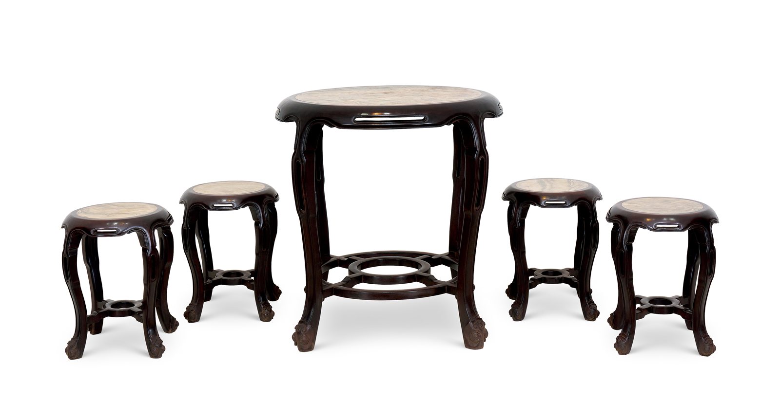 521 红木镶石面鼓桌一组五件