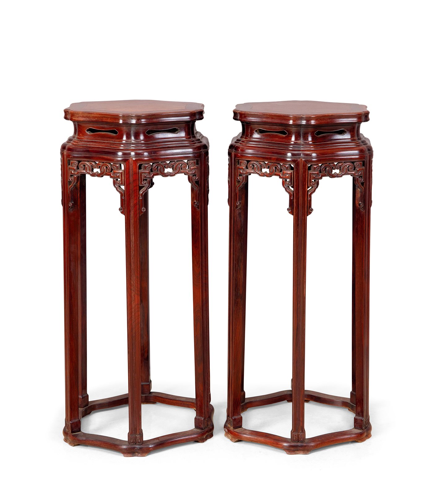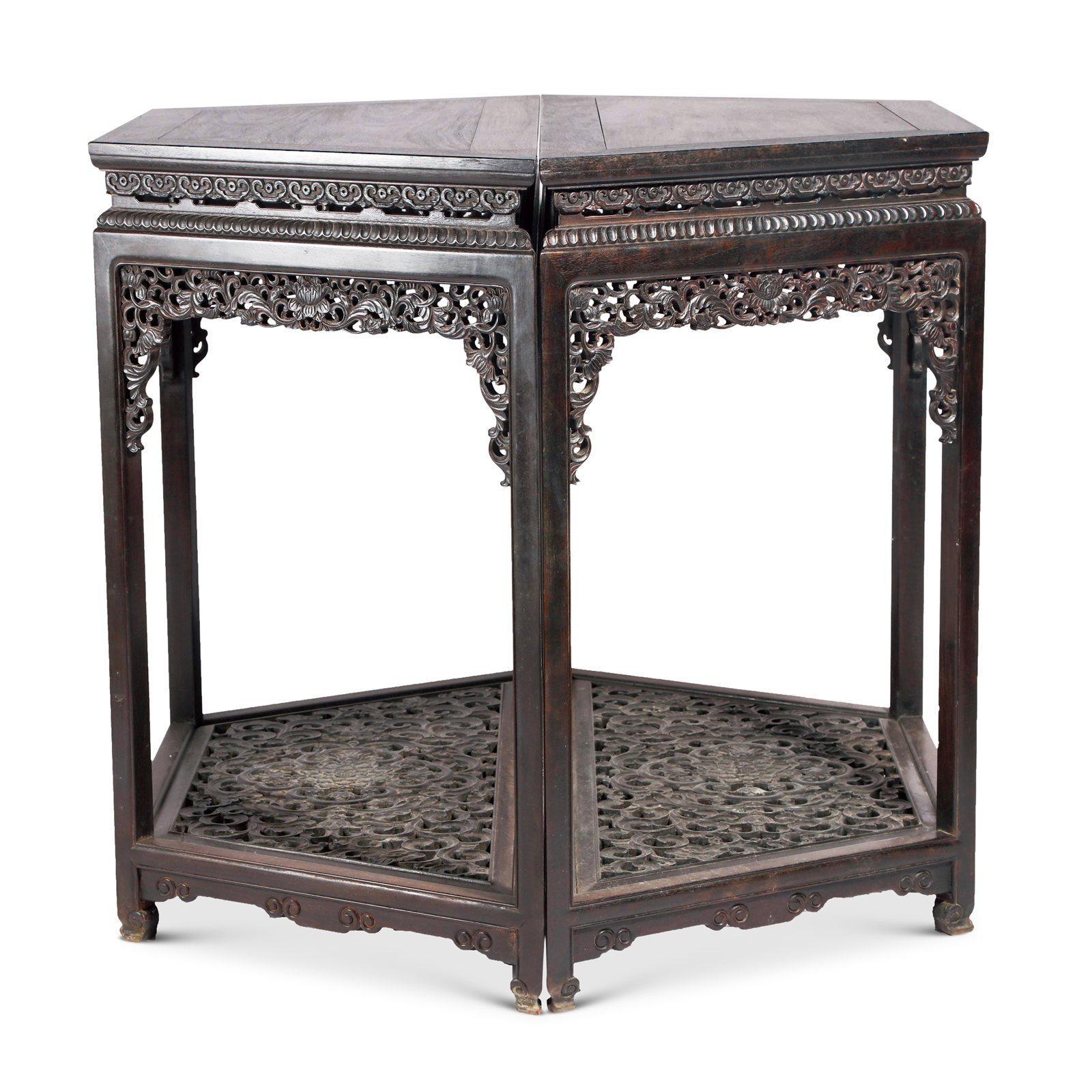 534 檀木西番莲纹六角半桌一对
