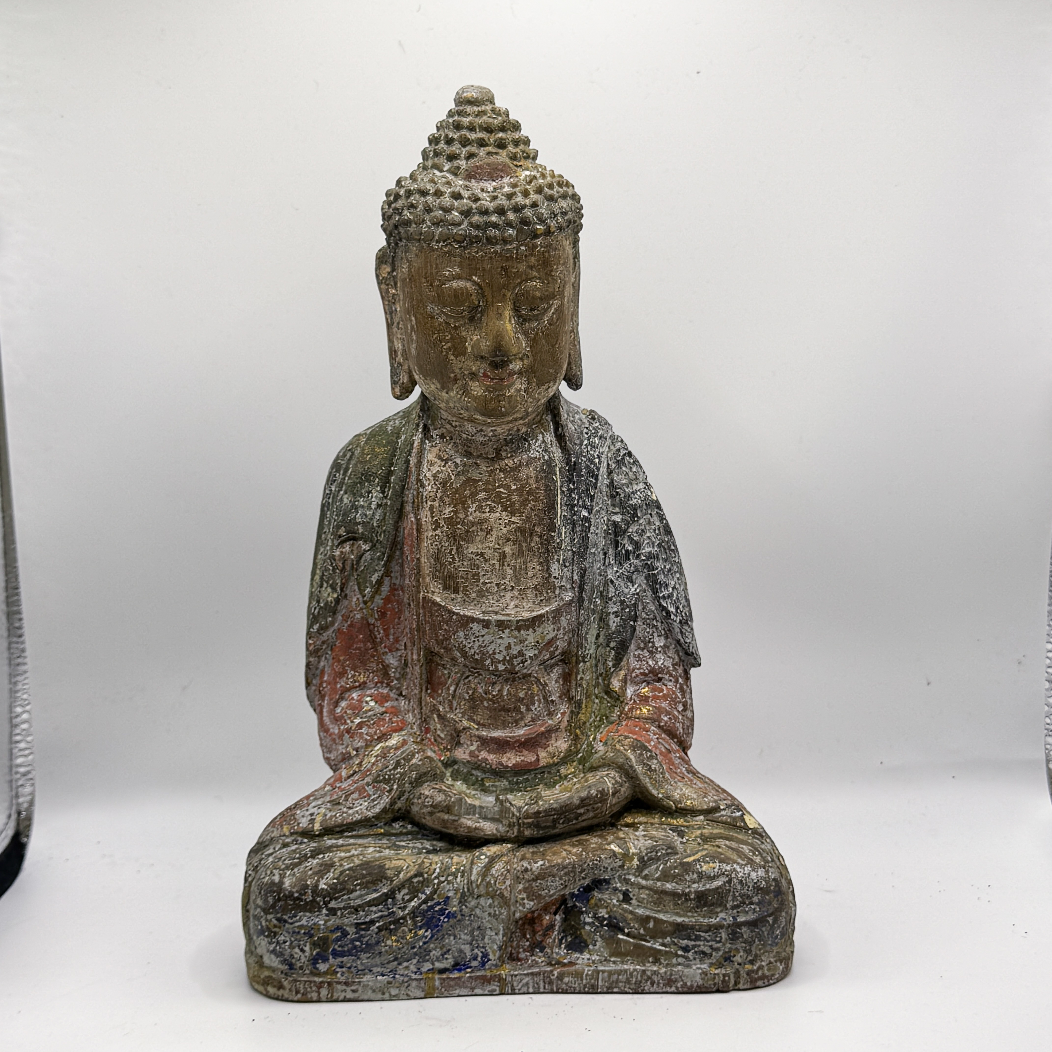 1013 木雕矿彩释迦摩尼坐像