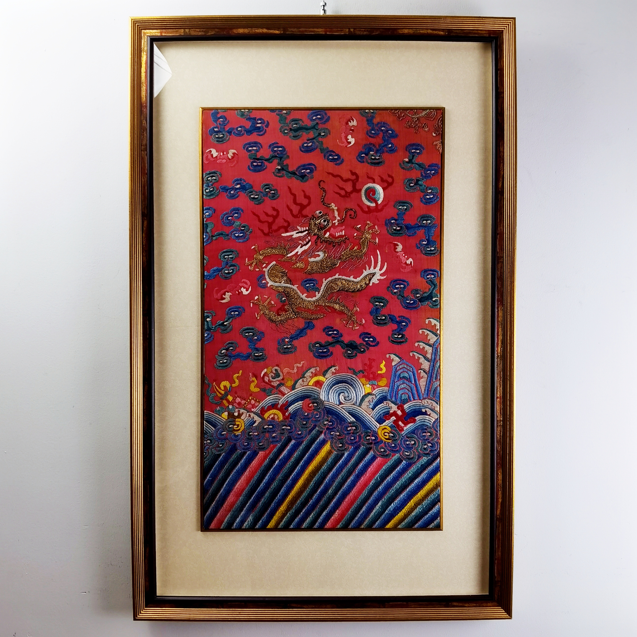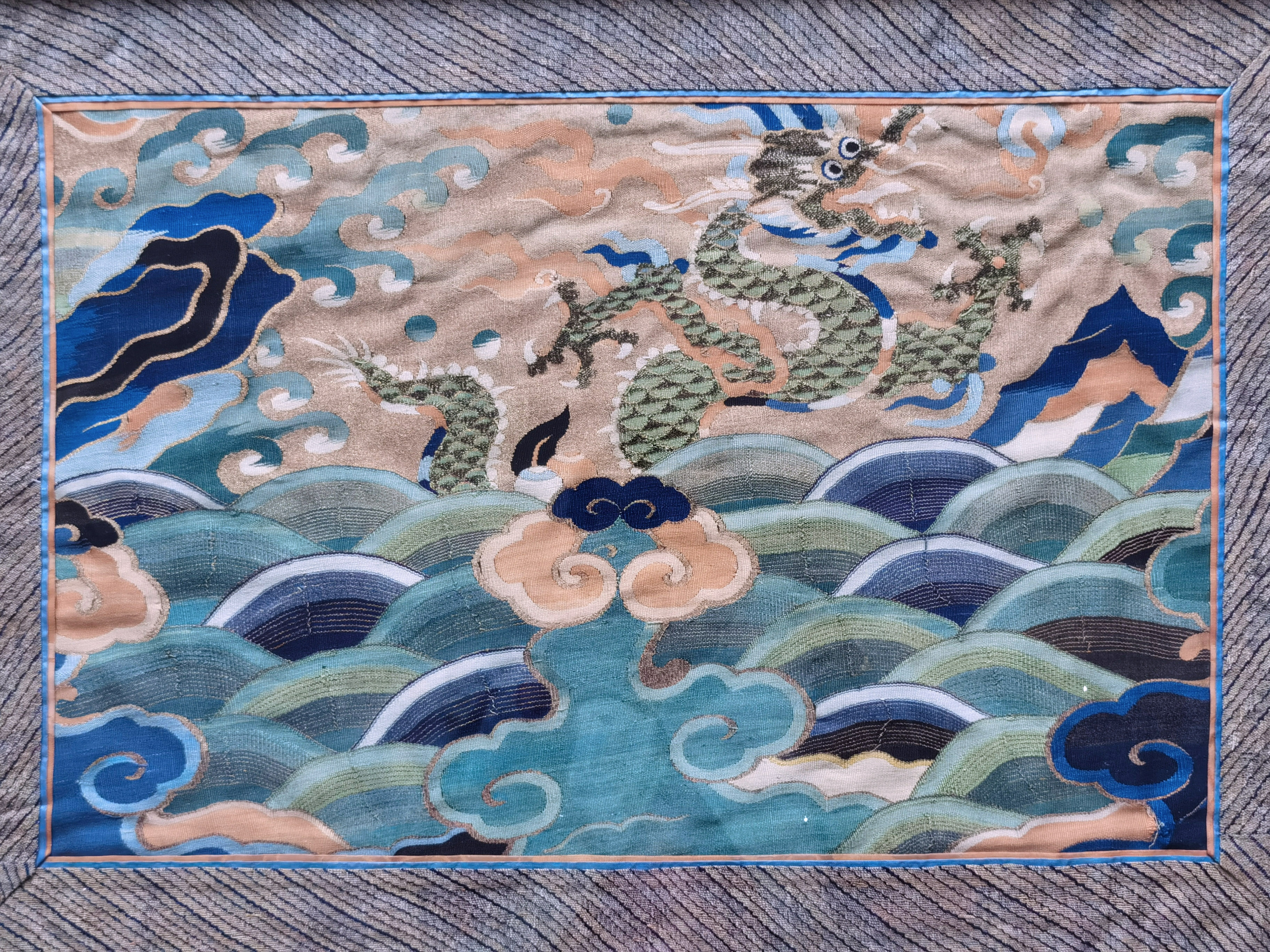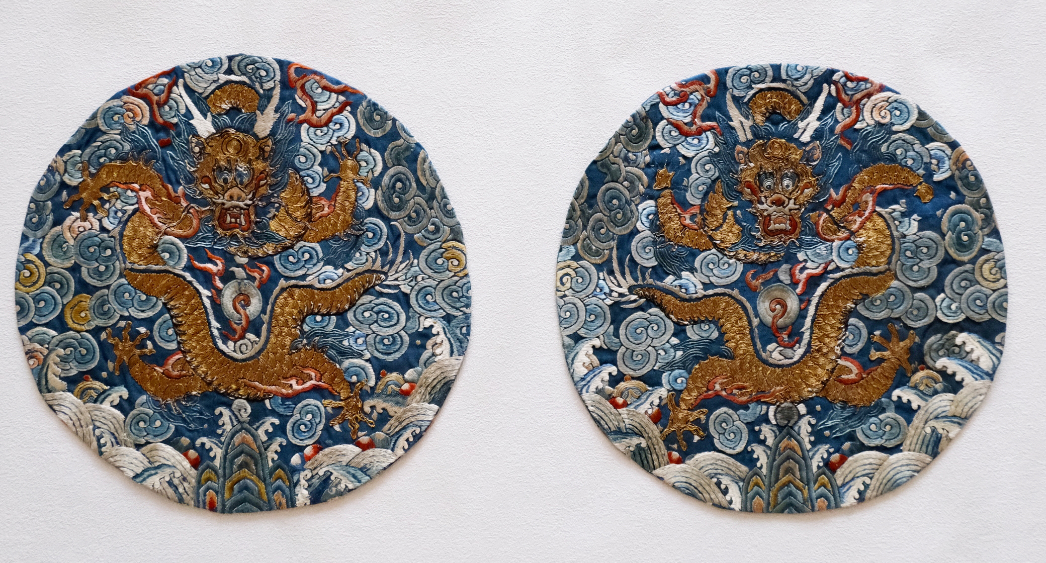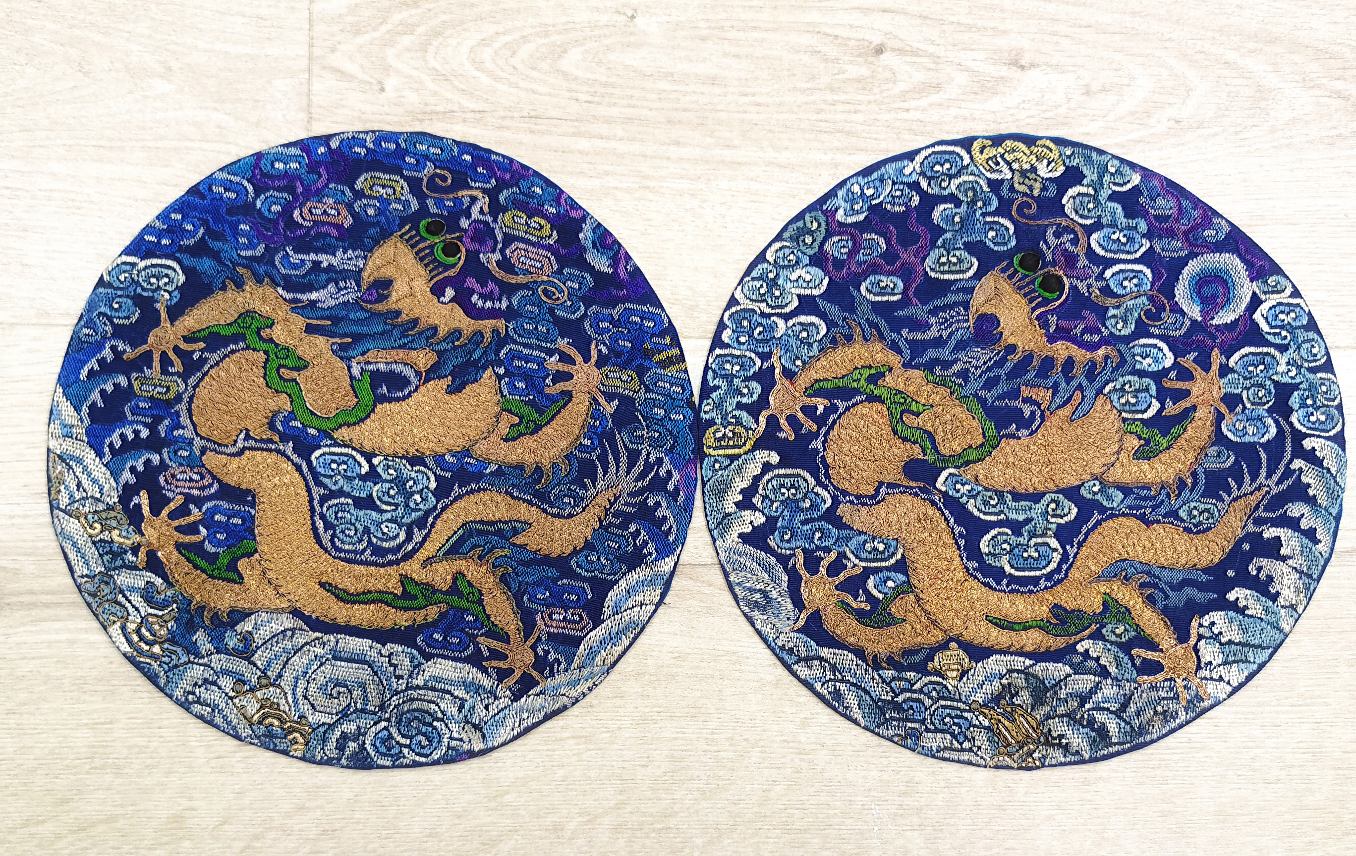 3089 纳沙绣盘金侧面龙圆龙补一对