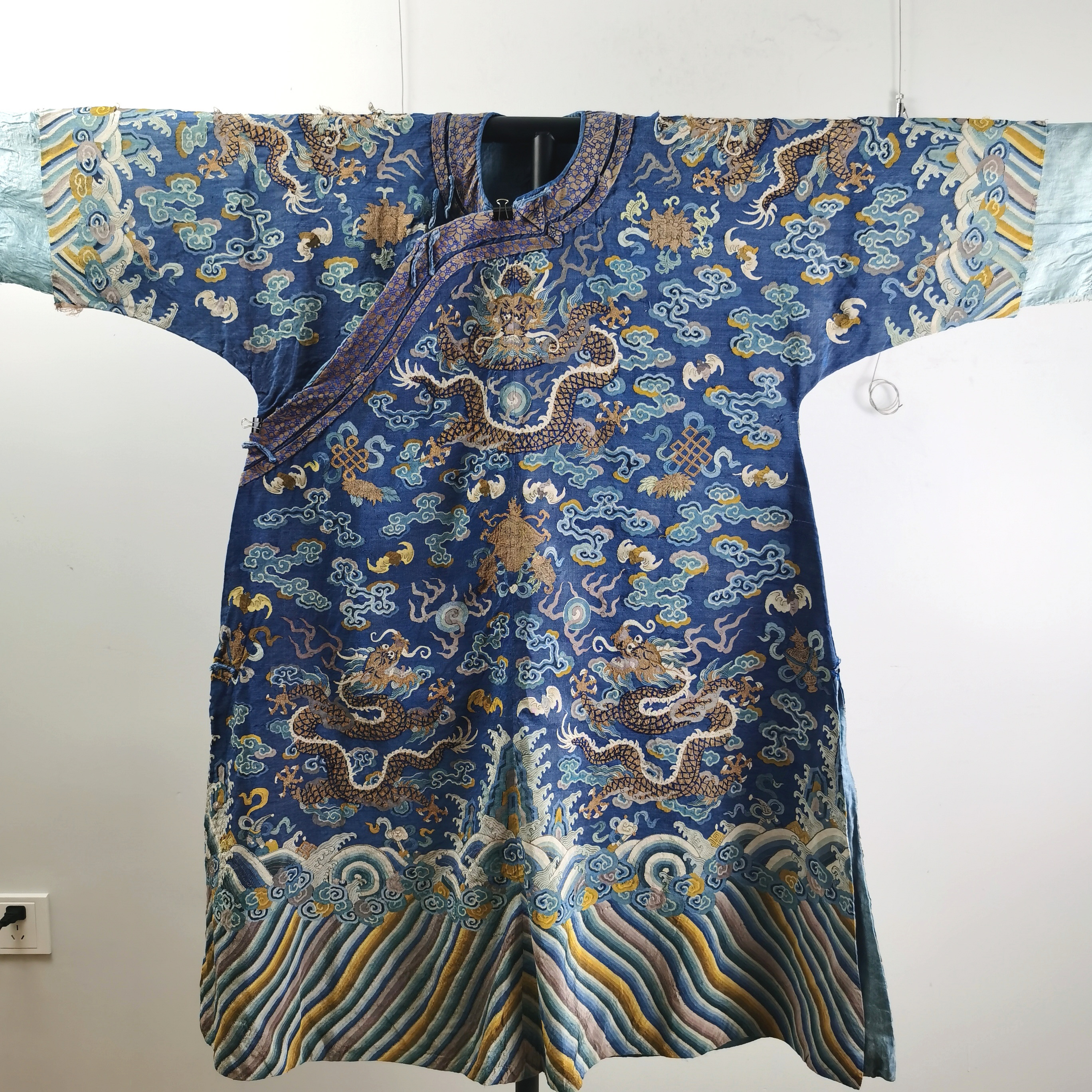 3093 缂丝通万字纹地缂金龙纹蟒袍一幅