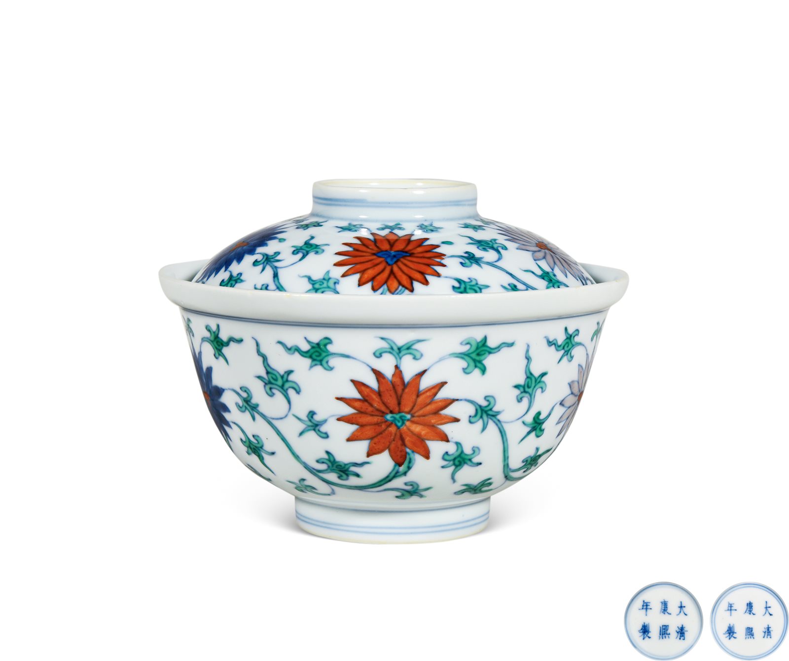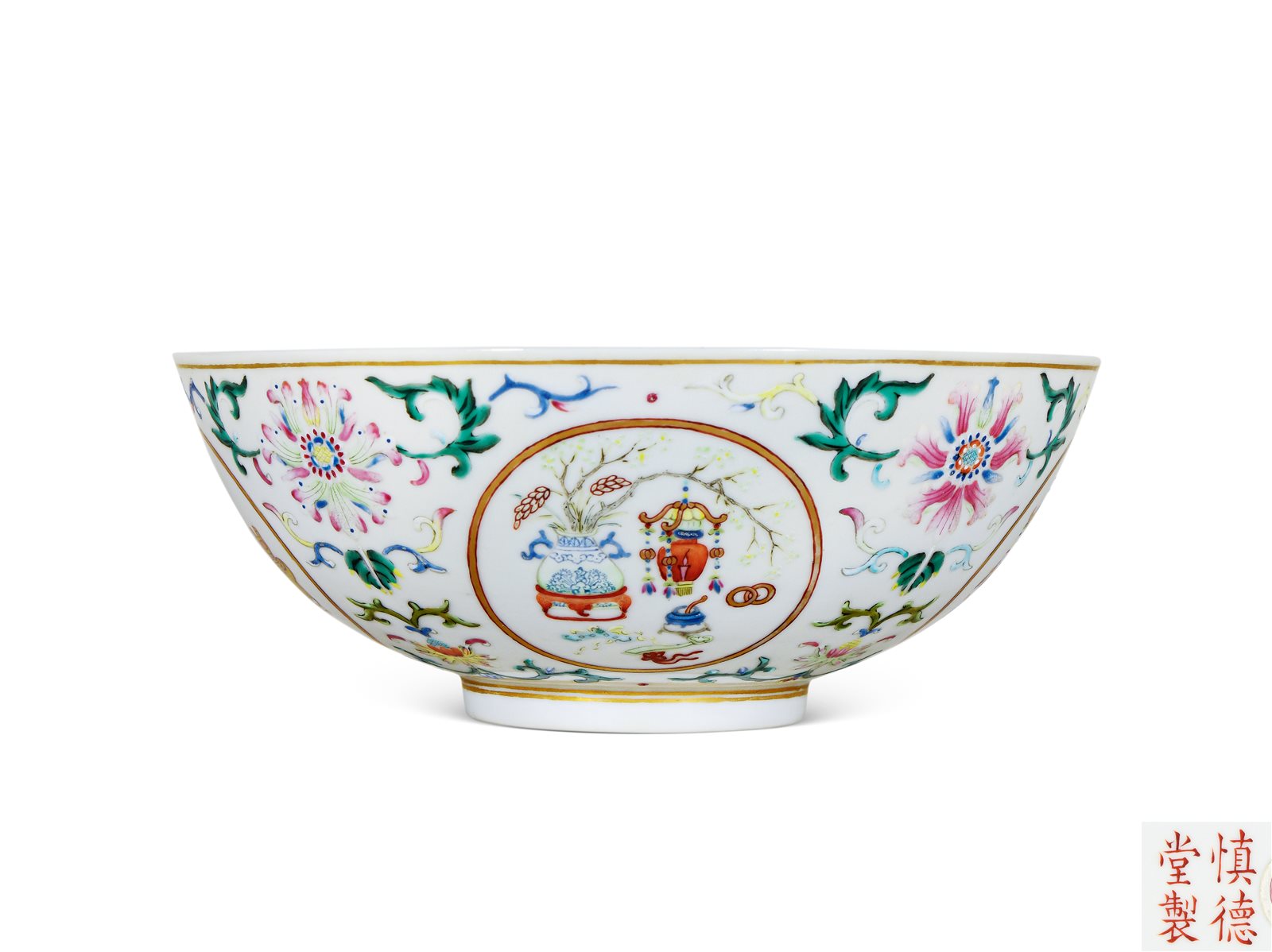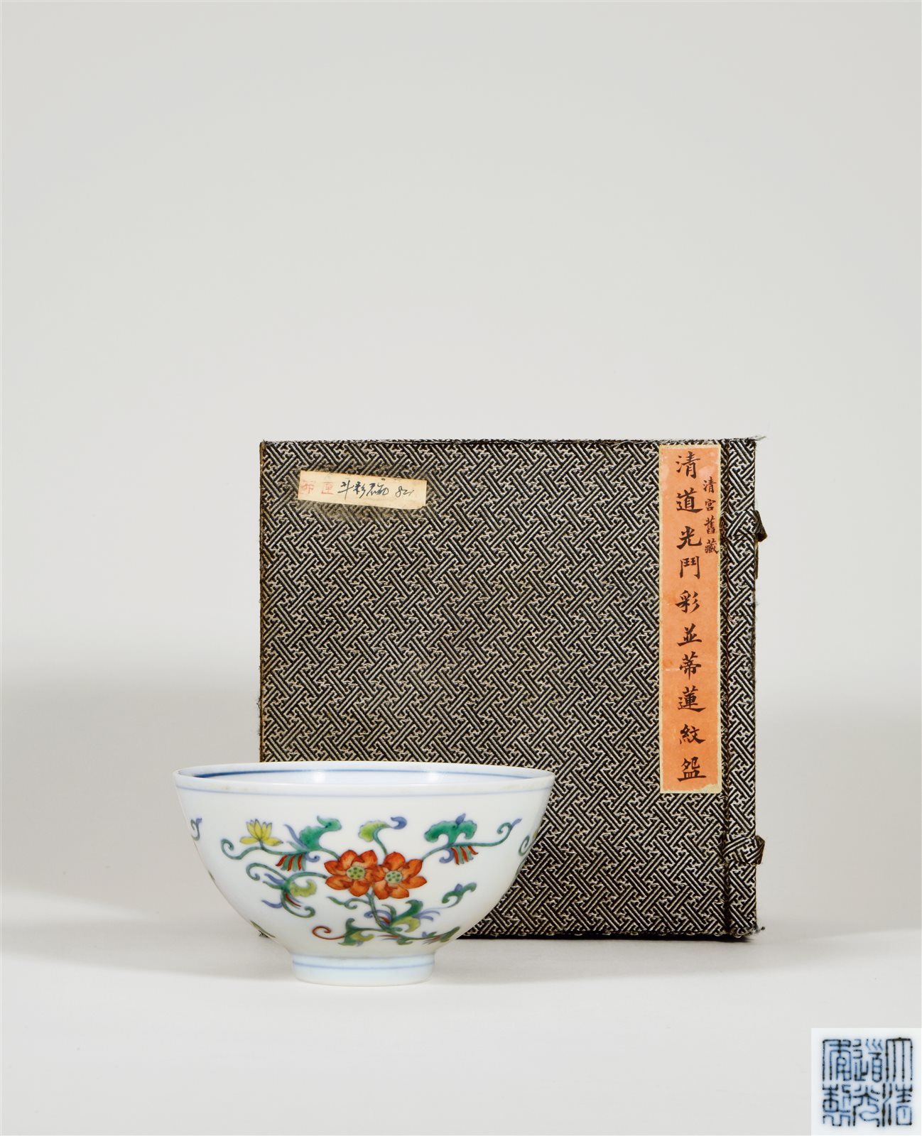152 粉彩缠枝莲开光描金「五谷丰登」碗