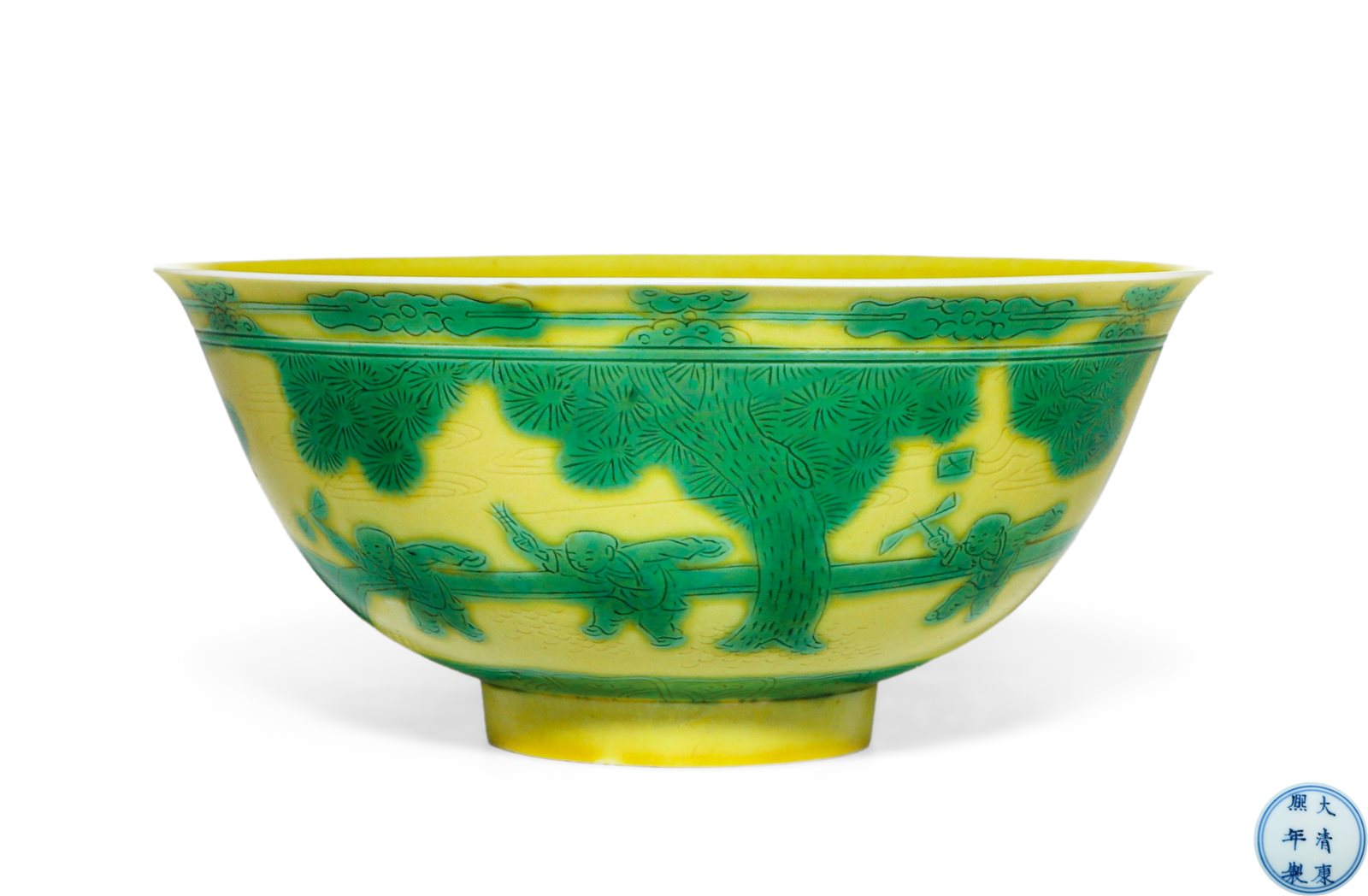 497 黄地绿彩婴戏图碗