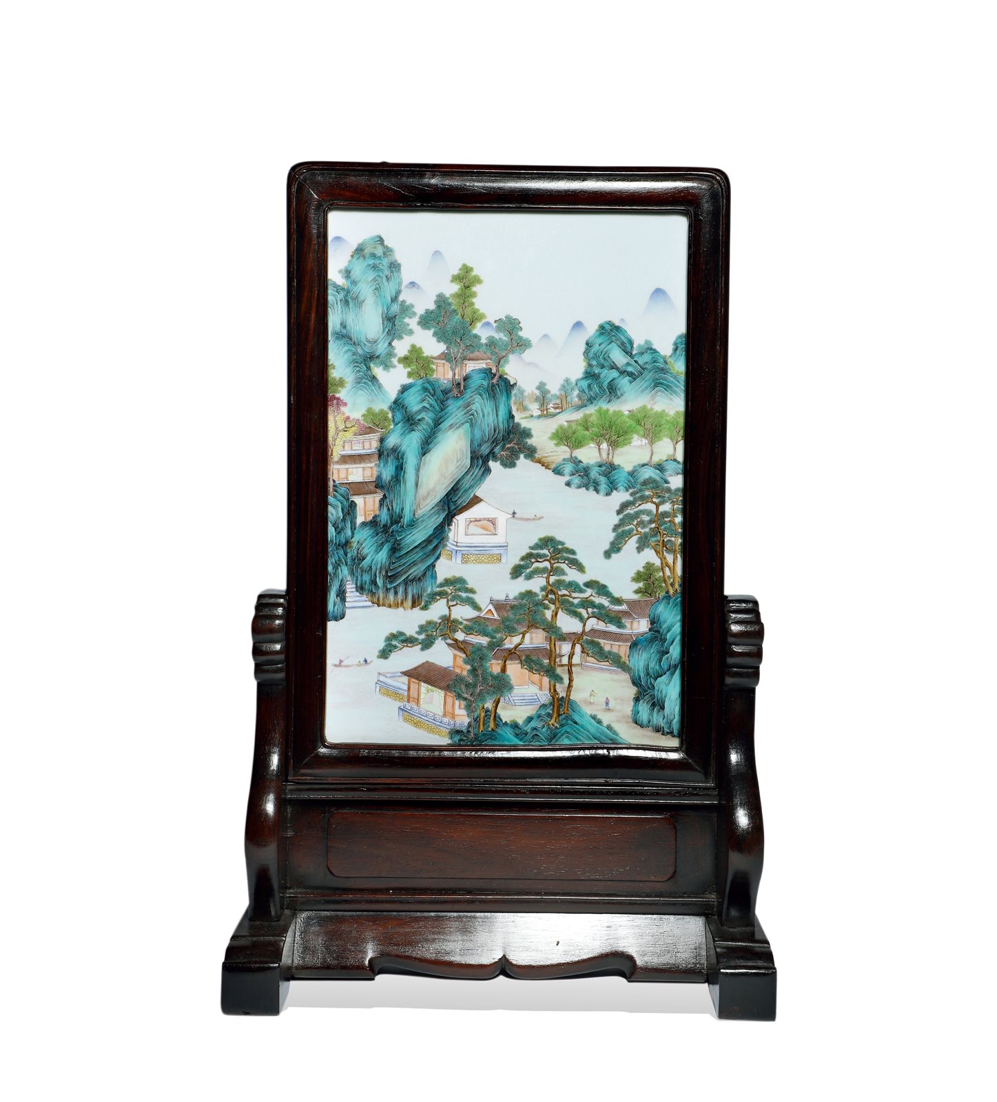 501 粉彩山水人物图瓷板插屏