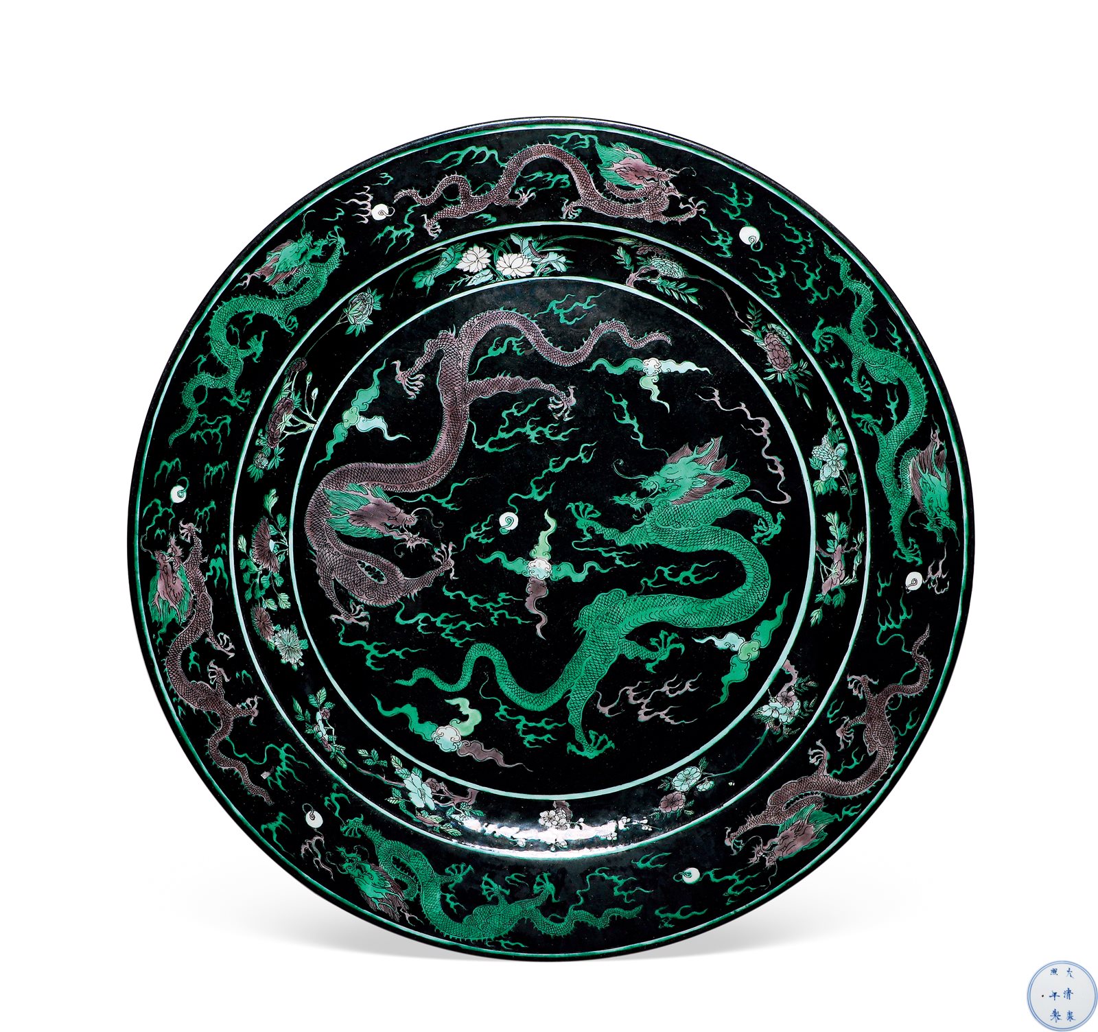 505 墨地素三彩双龙戏珠纹大盘