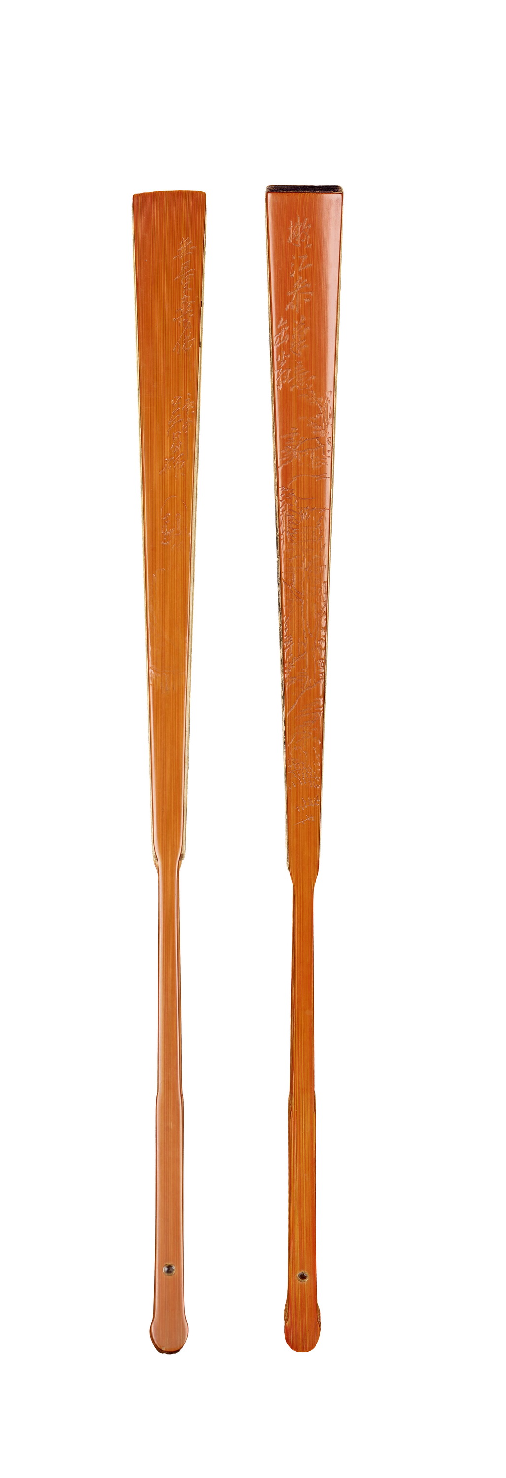1003 竹刻吴越王金塗塔篆书图文扇骨