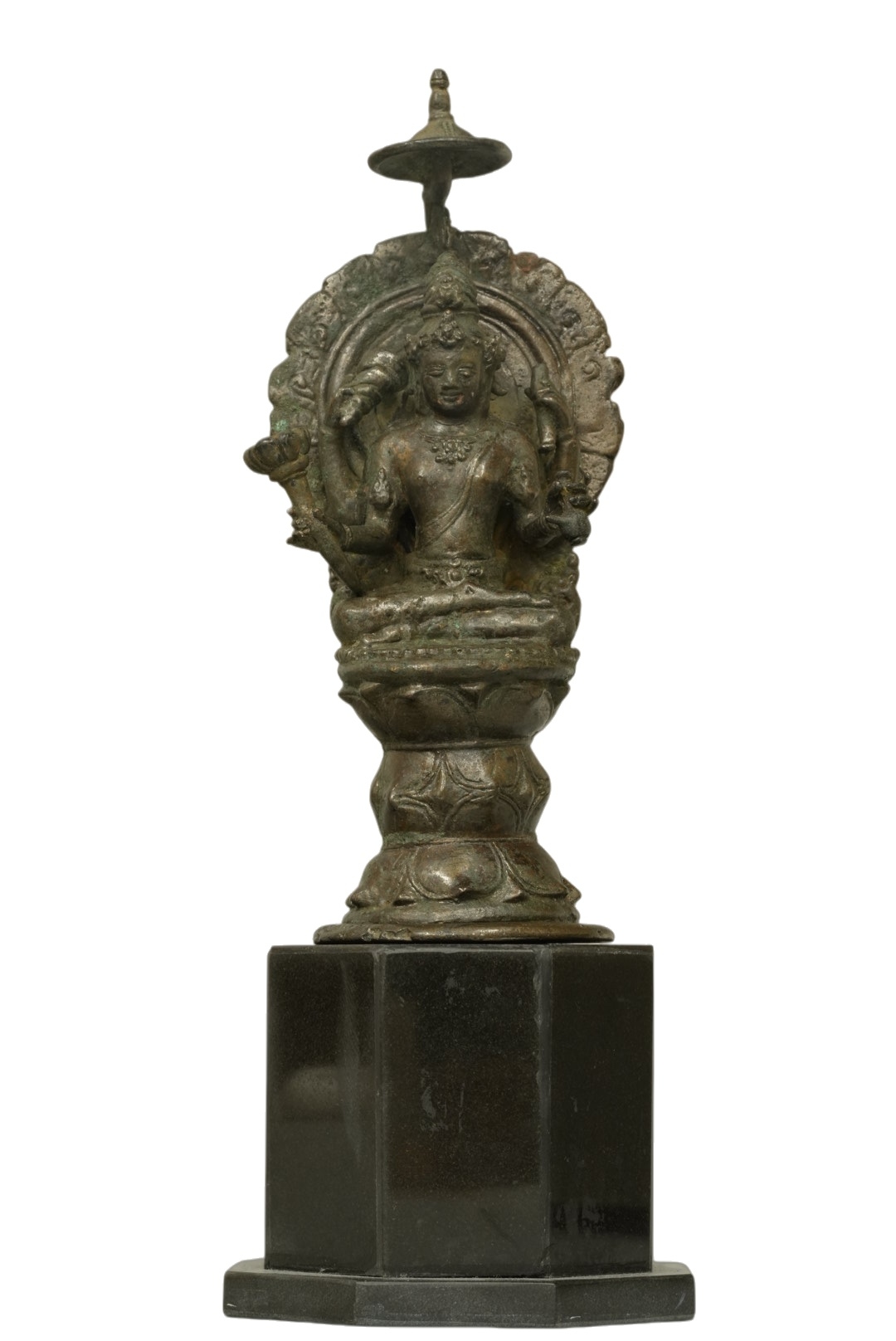 128 10世纪 爪哇菩萨铜坐像 大理石托台附