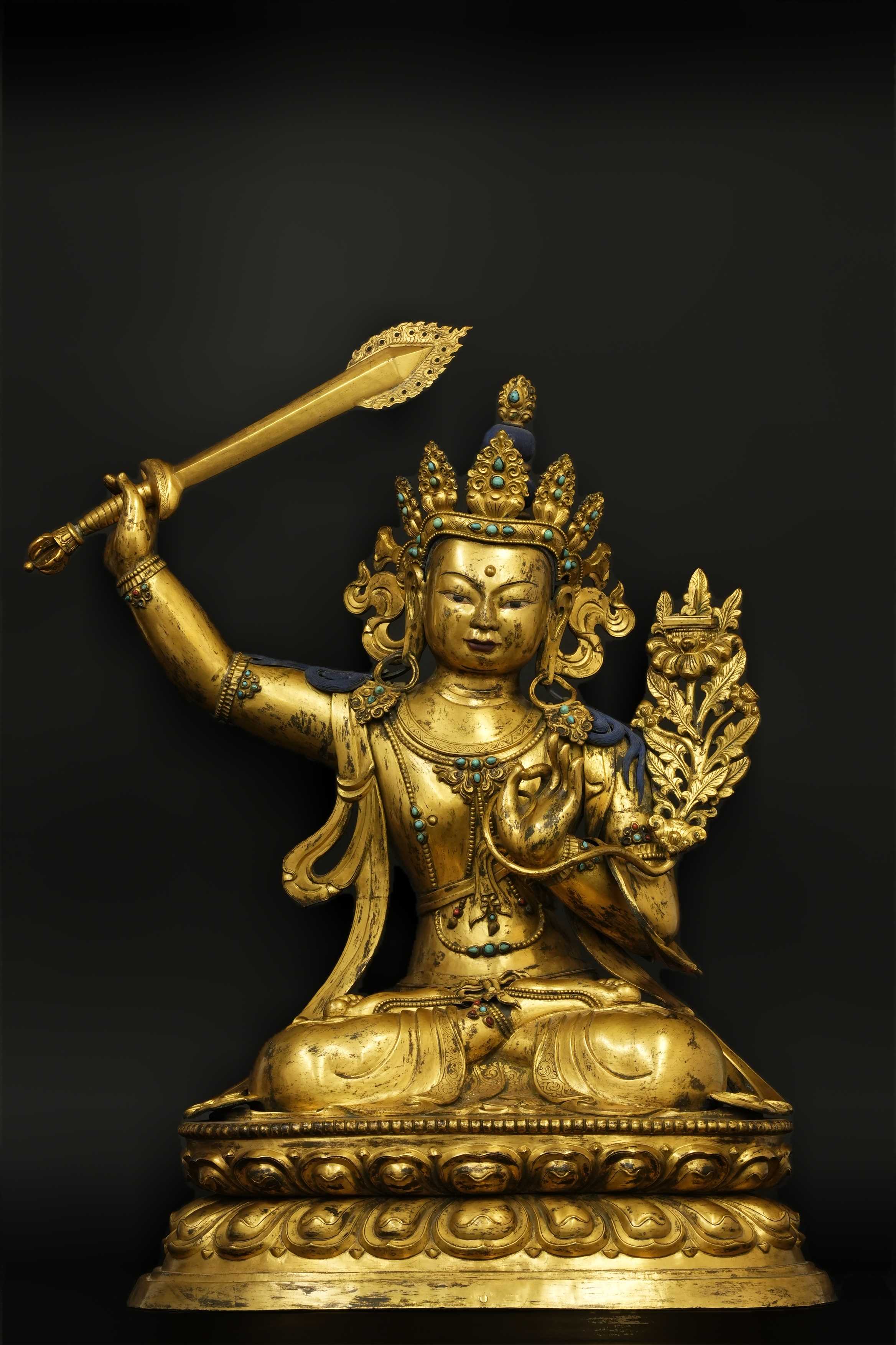 131 清中期 锤揲铜鎏金文殊菩萨像