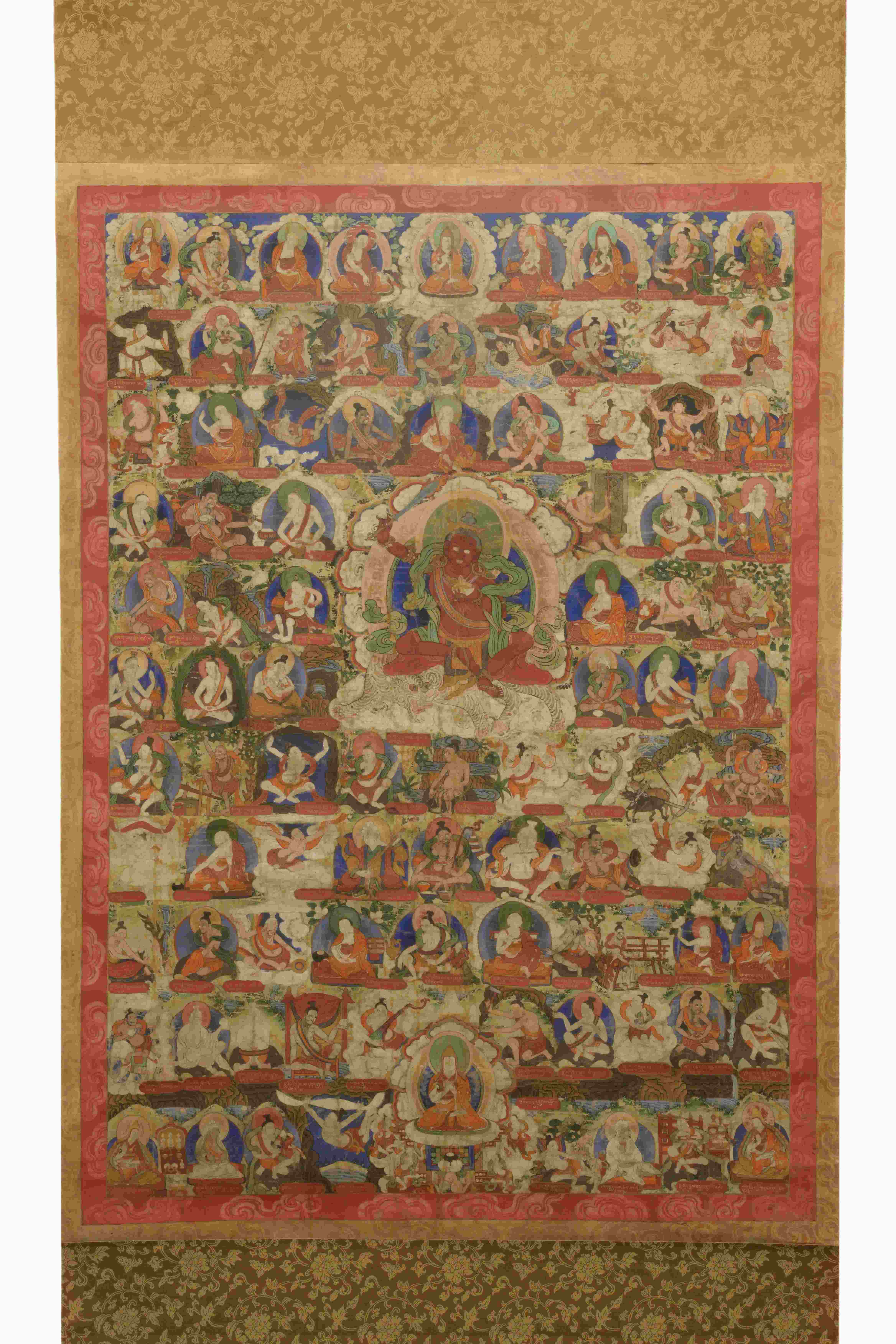137 十五世纪 西藏宗碦巴大威德金刚法身合一像 八十四大成就者唐卡