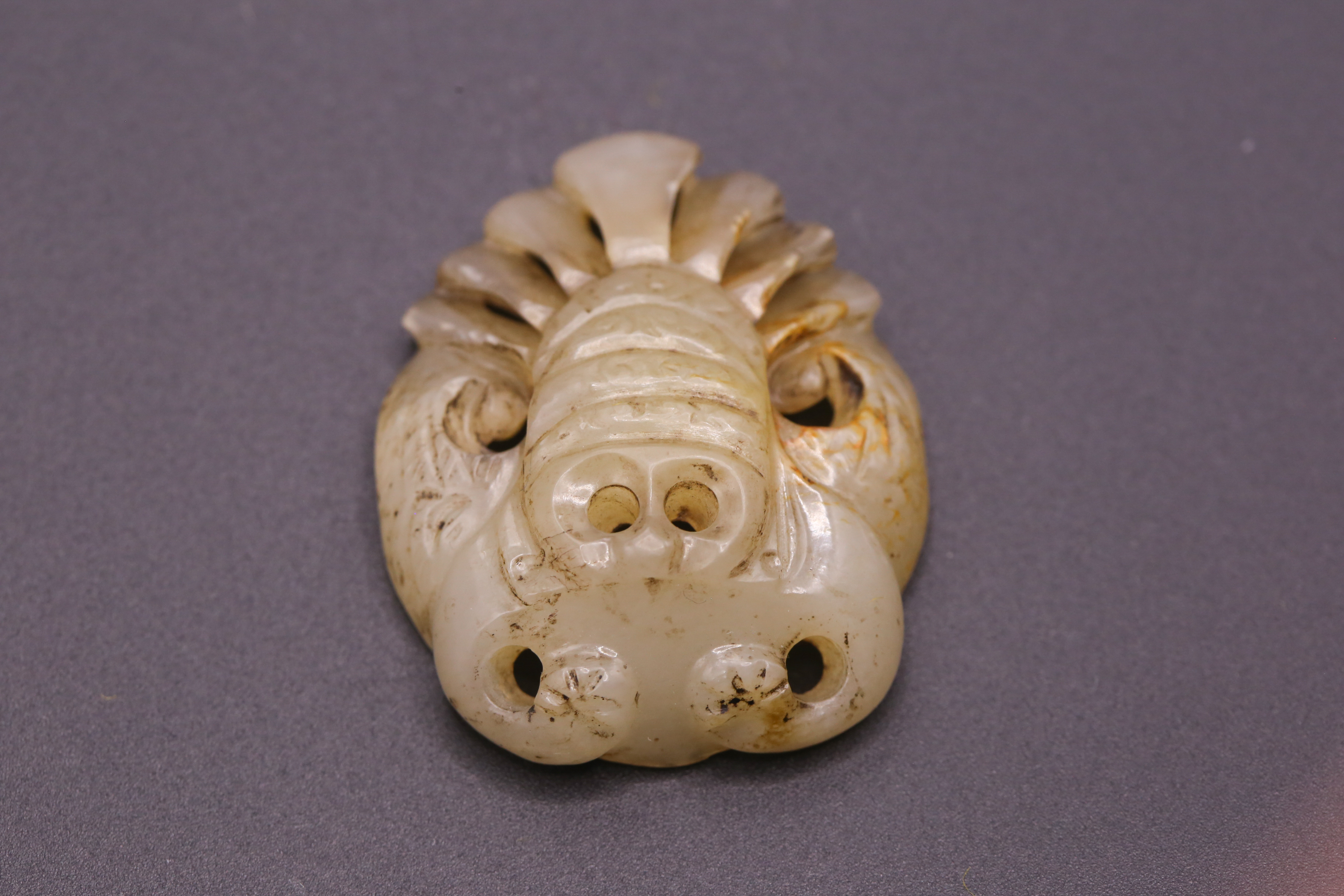 4143 白玉刻兽面龙纹剑珌