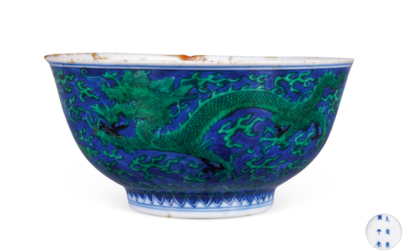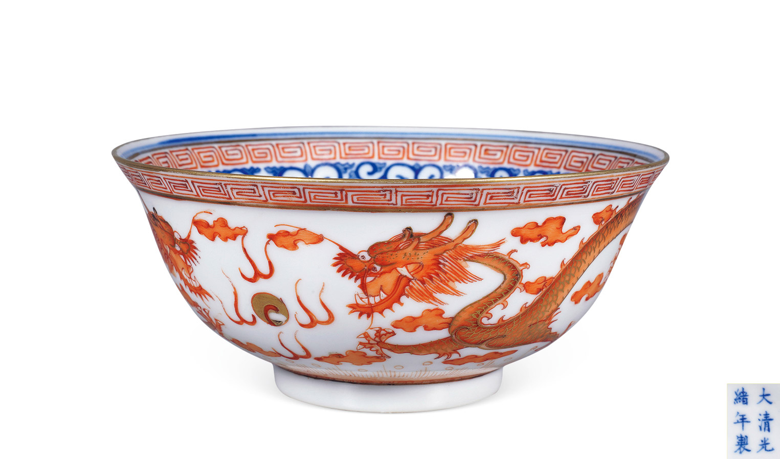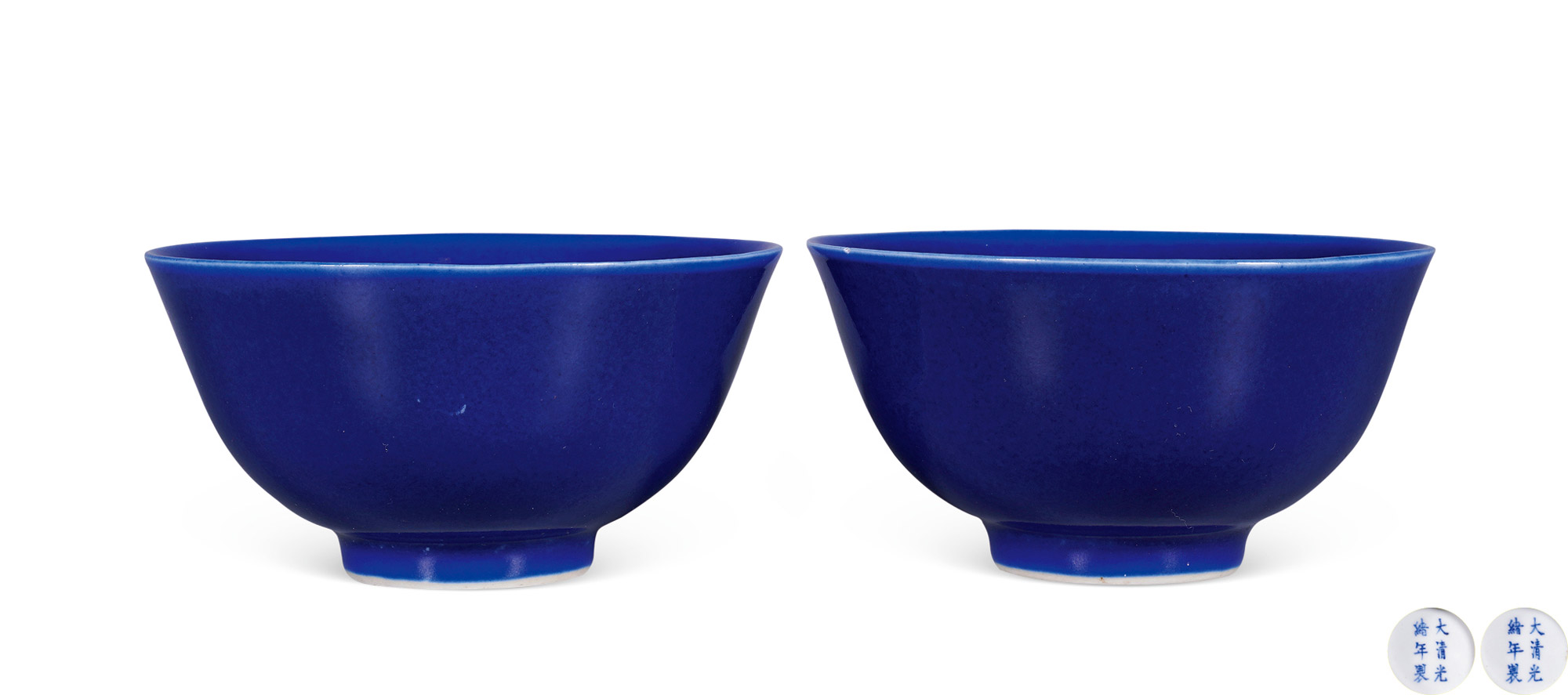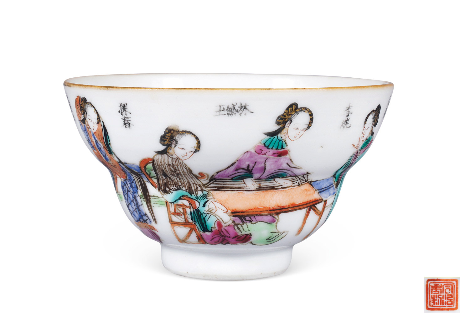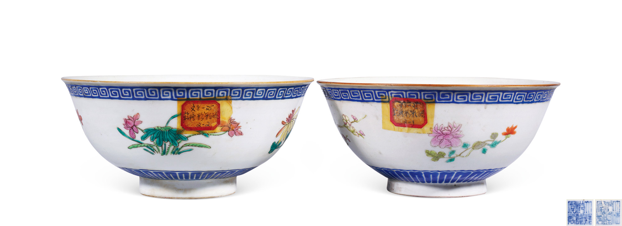 1014 料彩五福捧寿小杯、德化花口杯(一组2件)