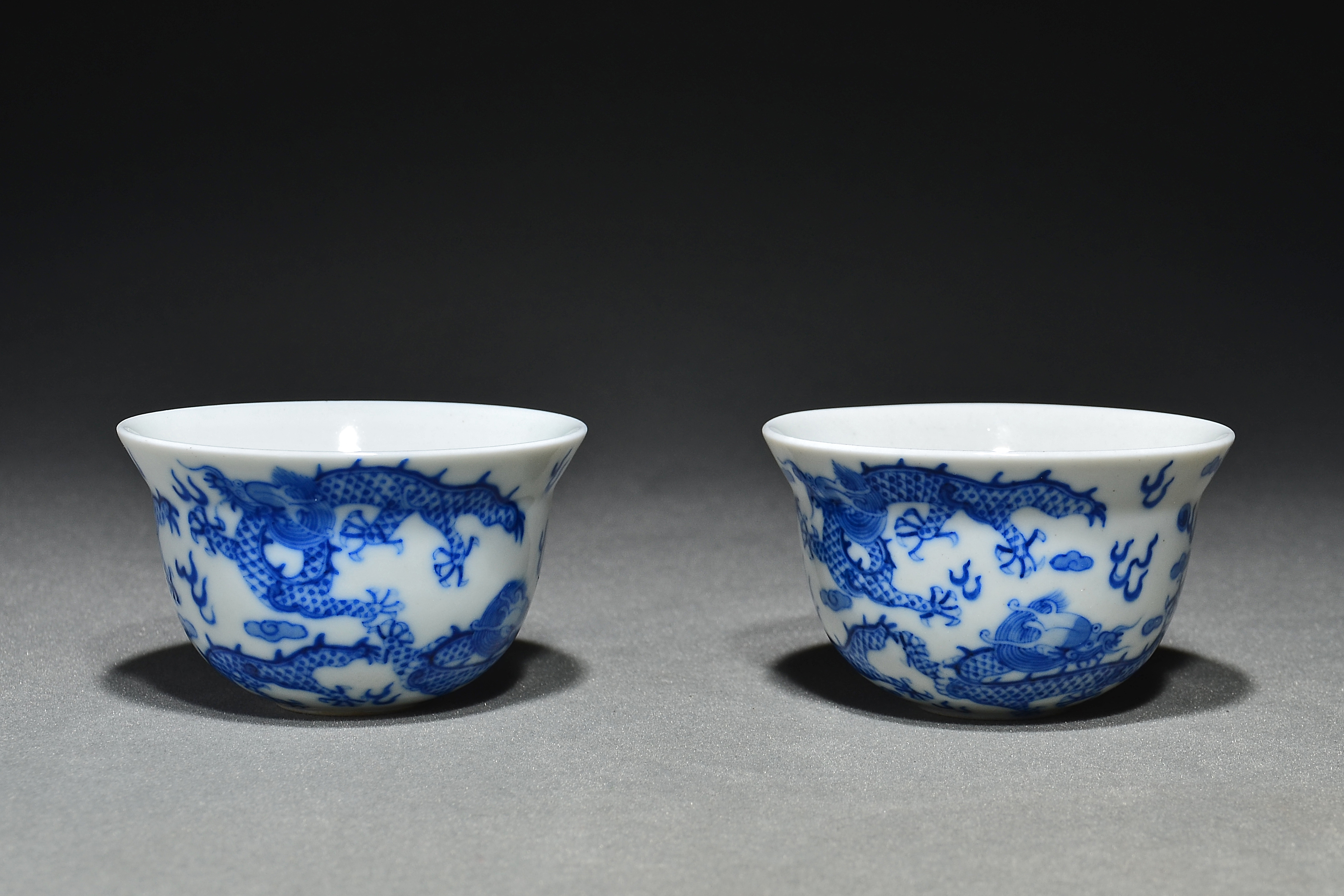 5503 青花云龙纹锦堂福记款茶杯一对
