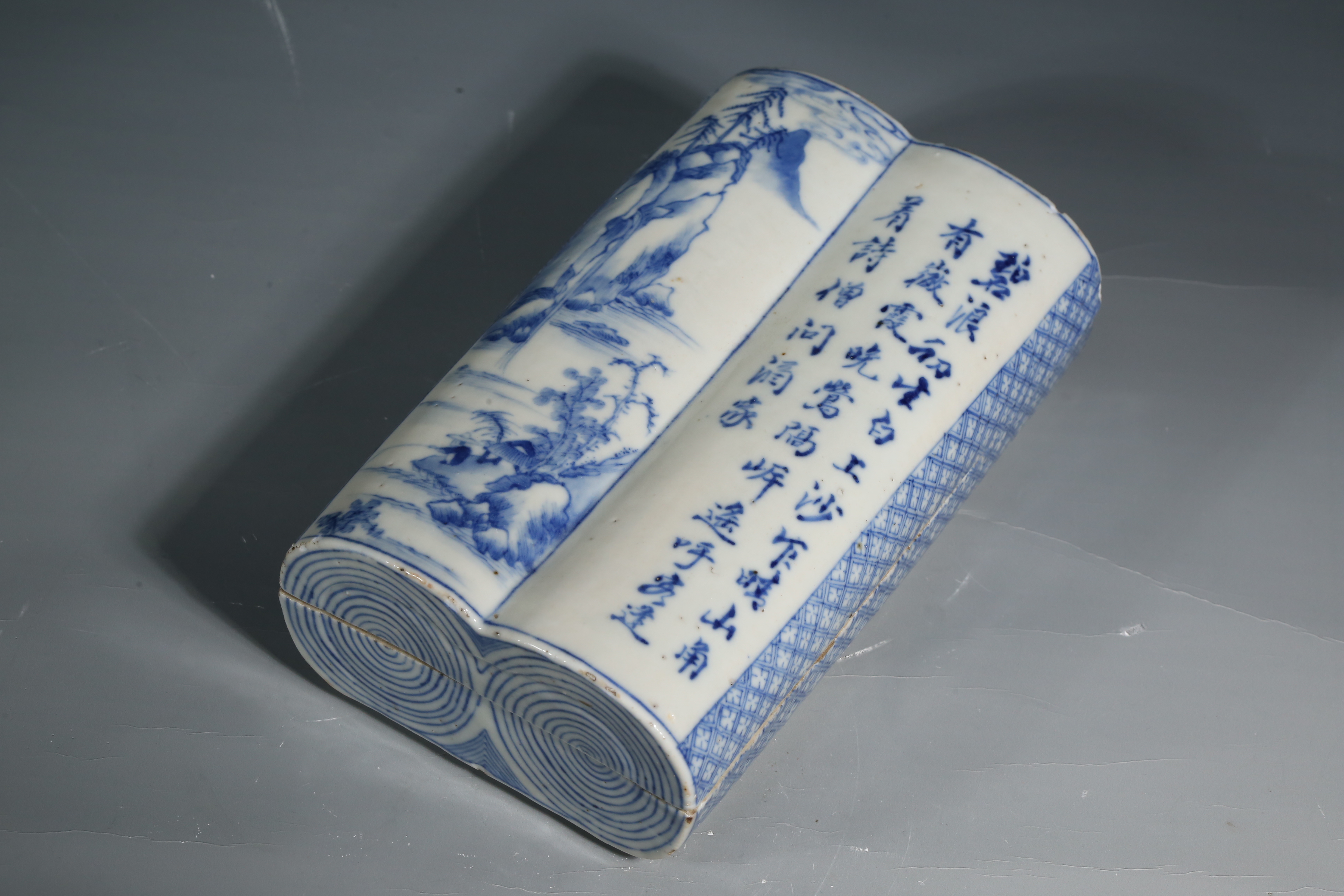 5520 青花山水诗文盖盒