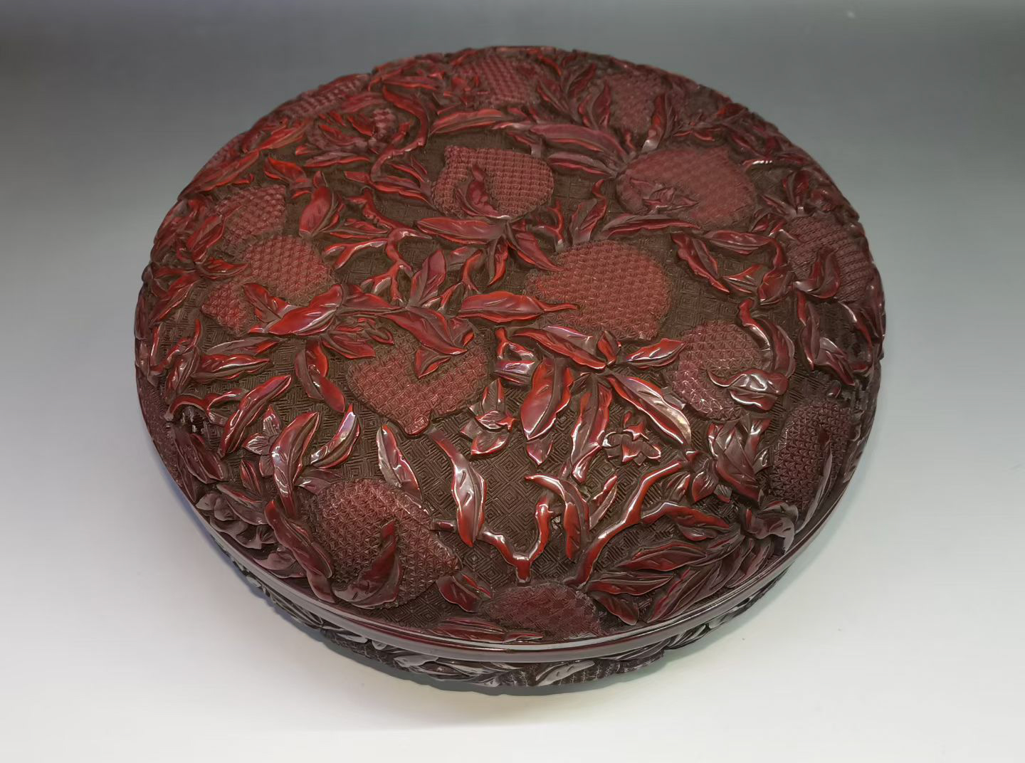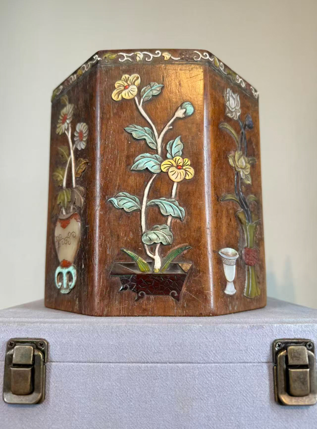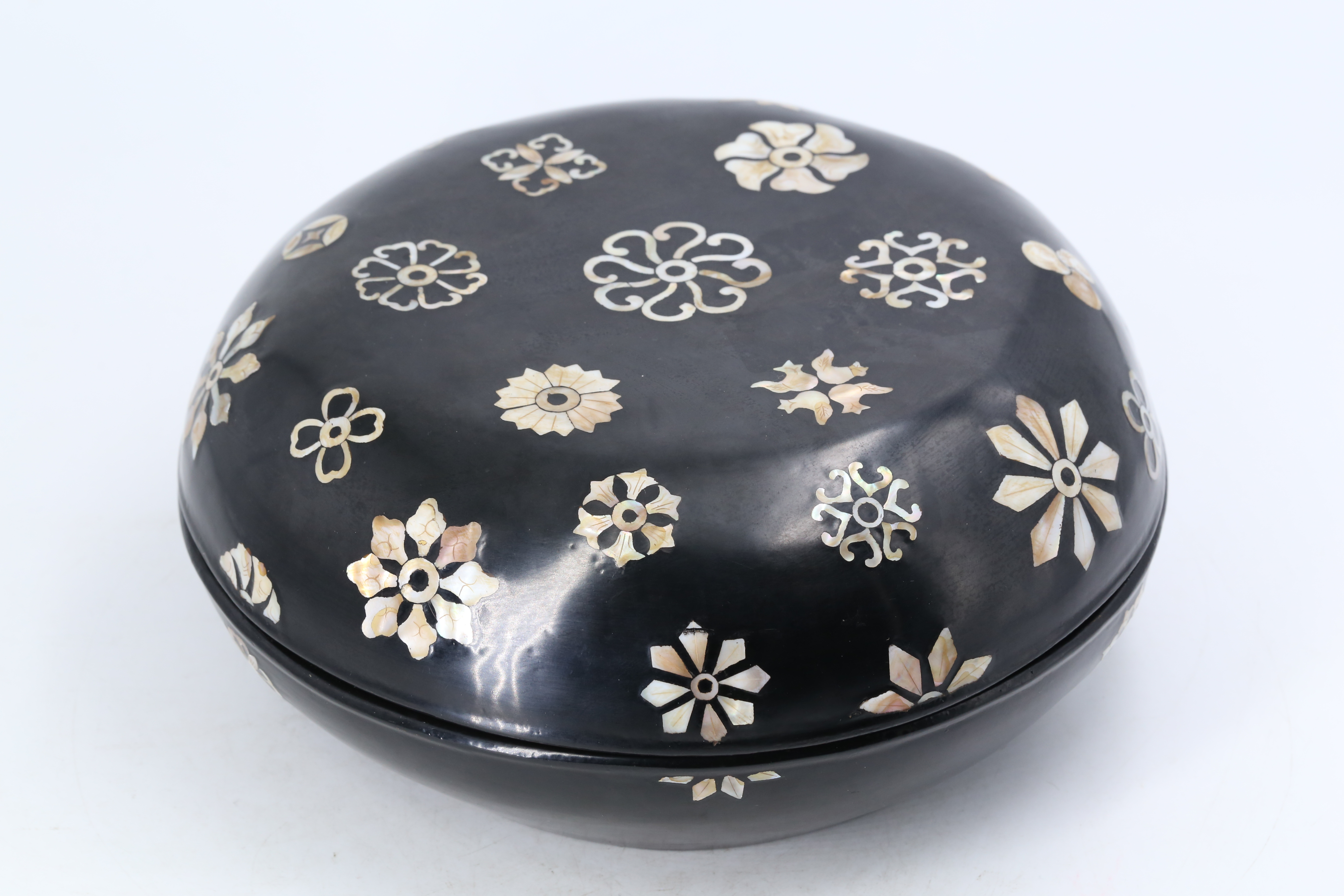 5007 黑漆嵌螺钿皮球花纹捧盒