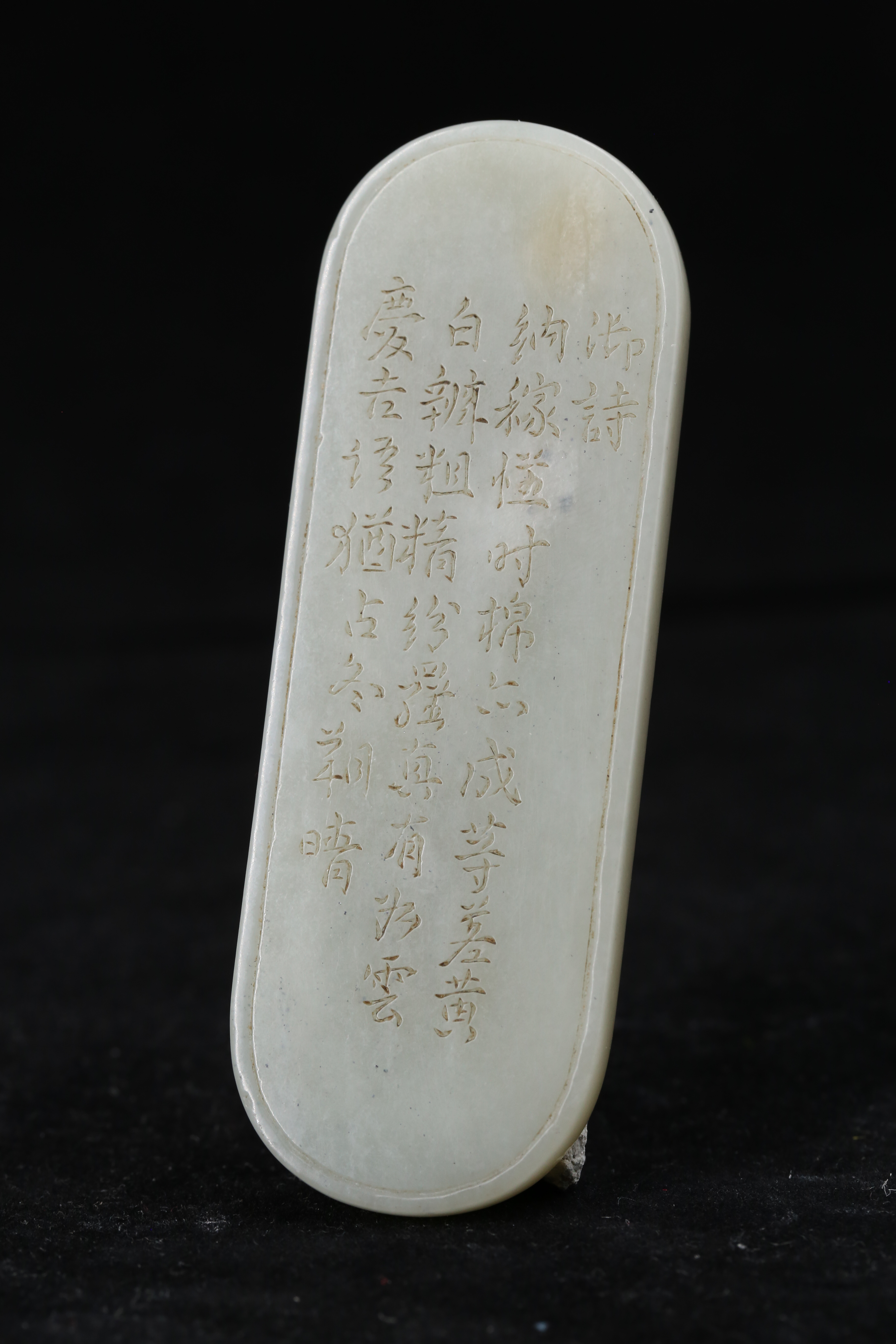 5169 胡开文铭白玉御诗椭圆墨式镇纸