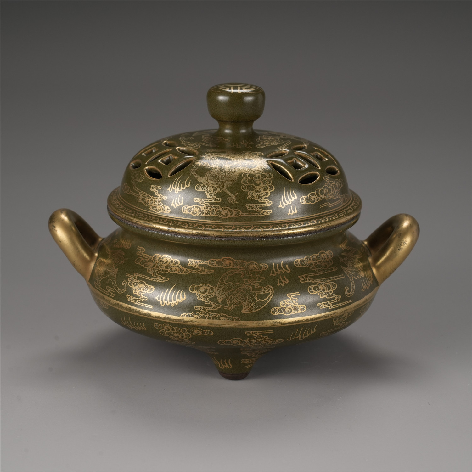 5240 茶叶末釉描金香炉
