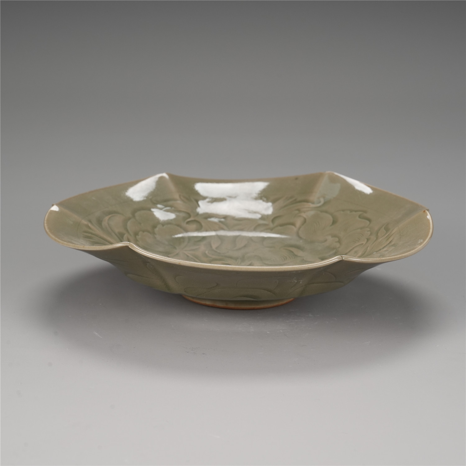 5249 耀州青柚刻花卉纹盘