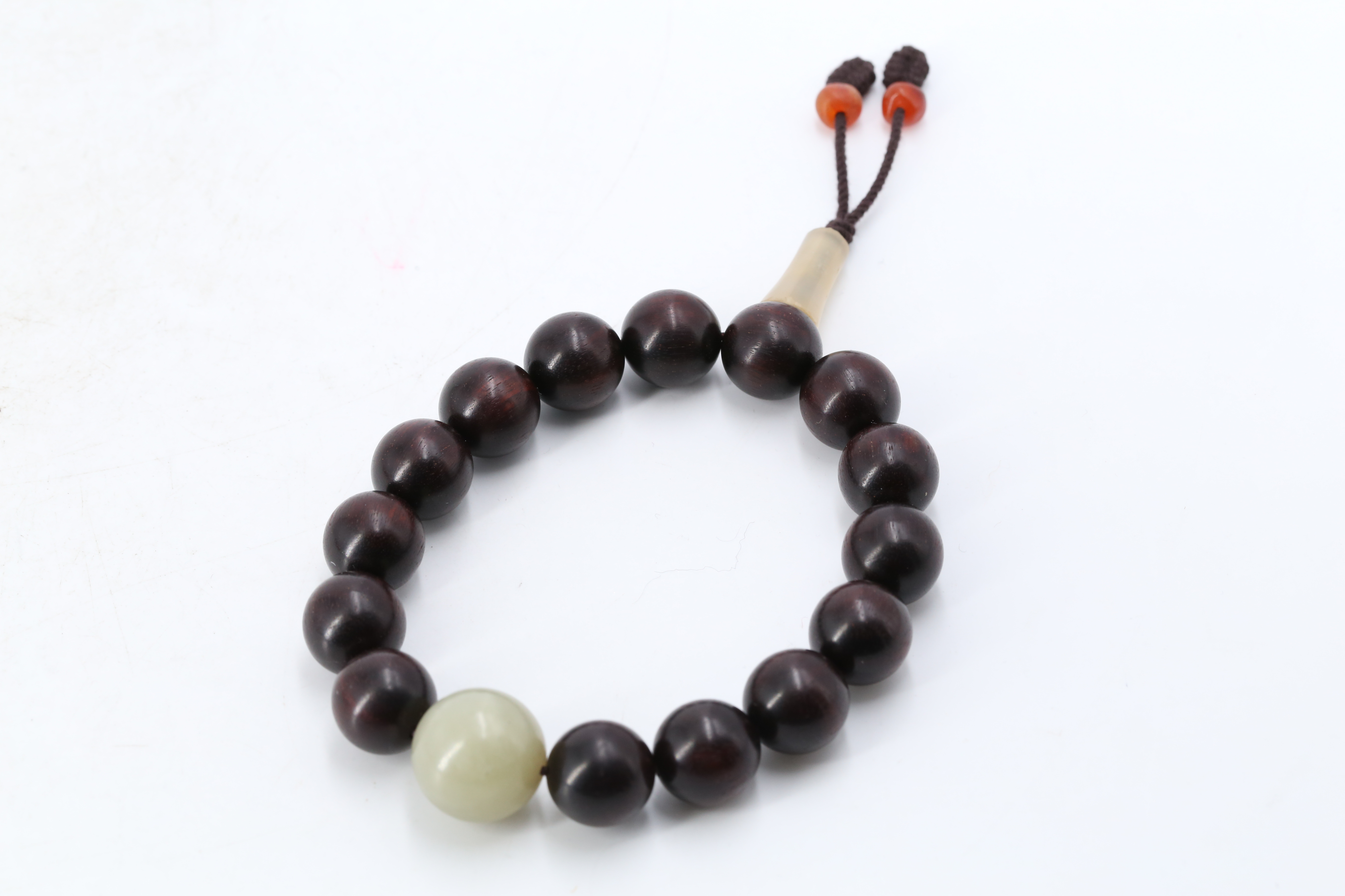 1115 小叶紫檀珠配白玉珠手串