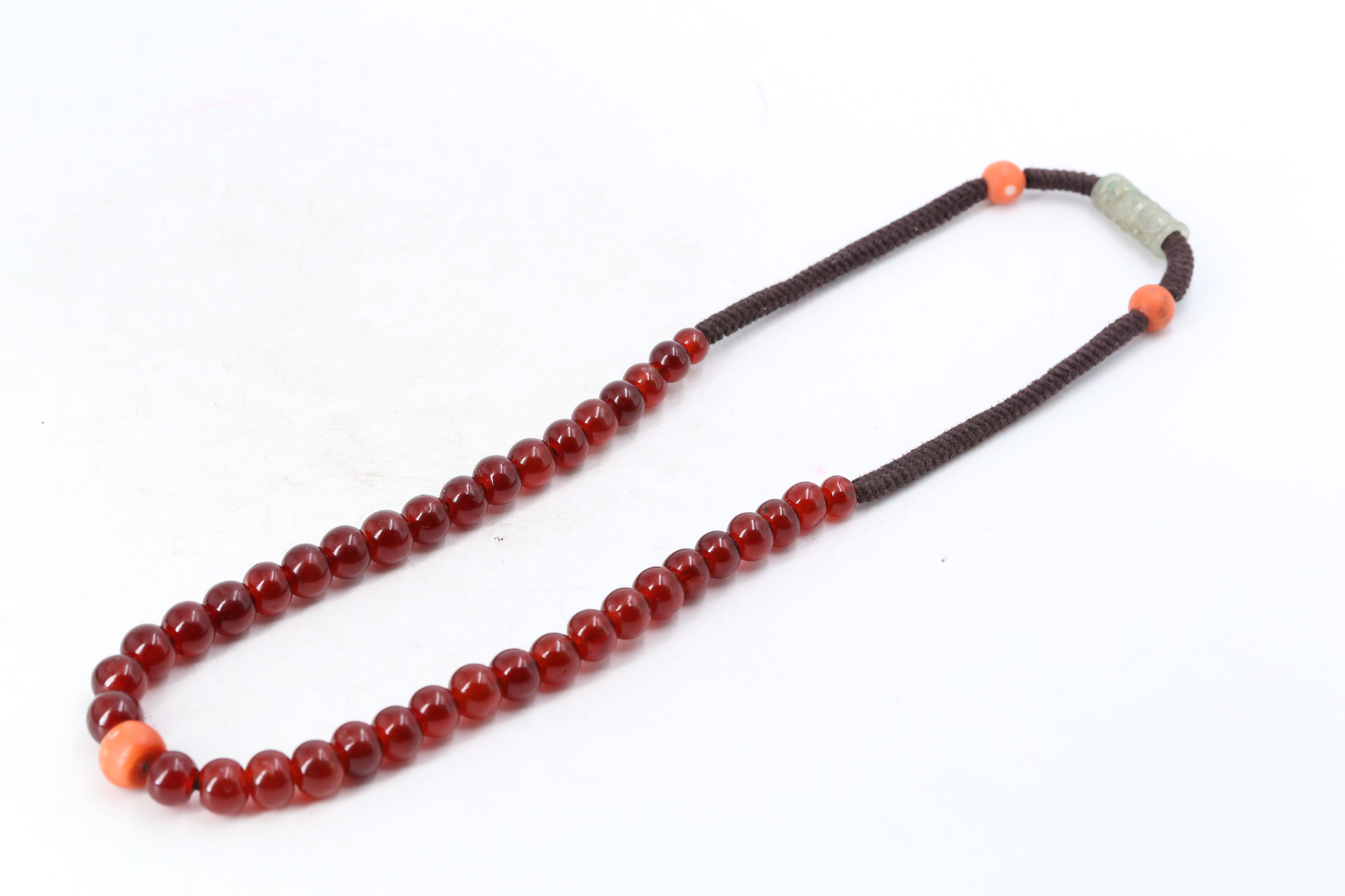 1108 缠丝玛瑙橄榄珠、白玉籽料珠、南红珠多宝串