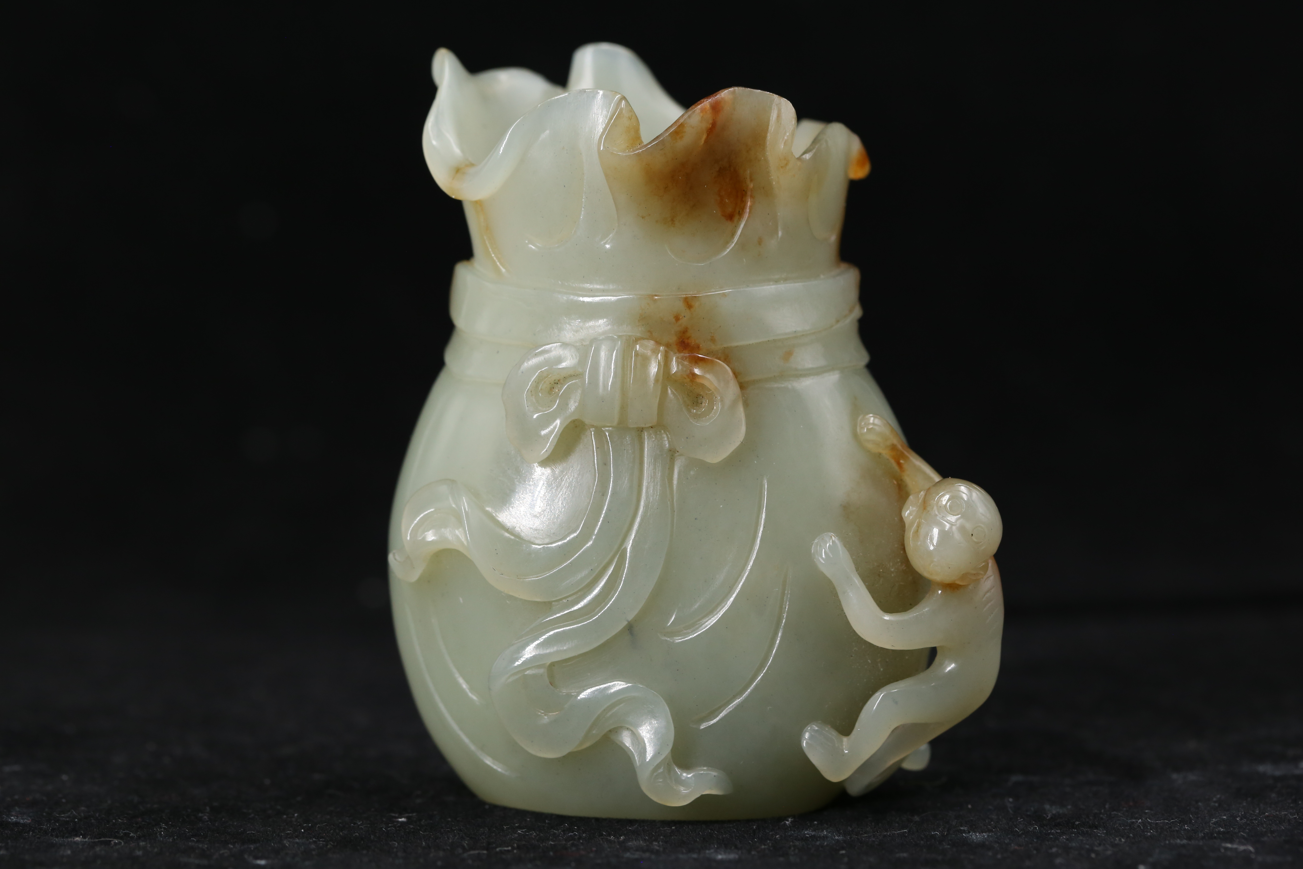 2159 白玉刻双童子聚财纹水盂
