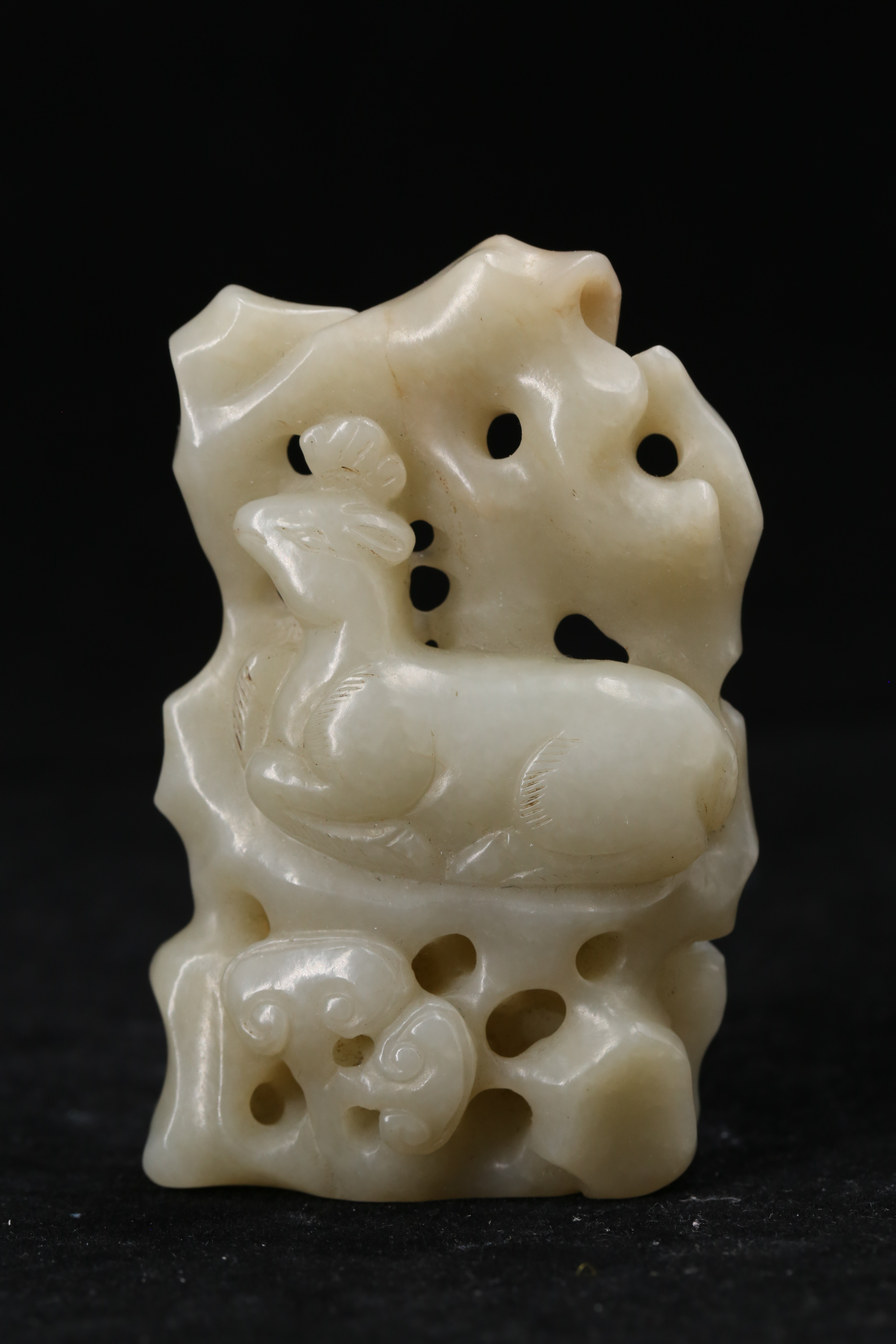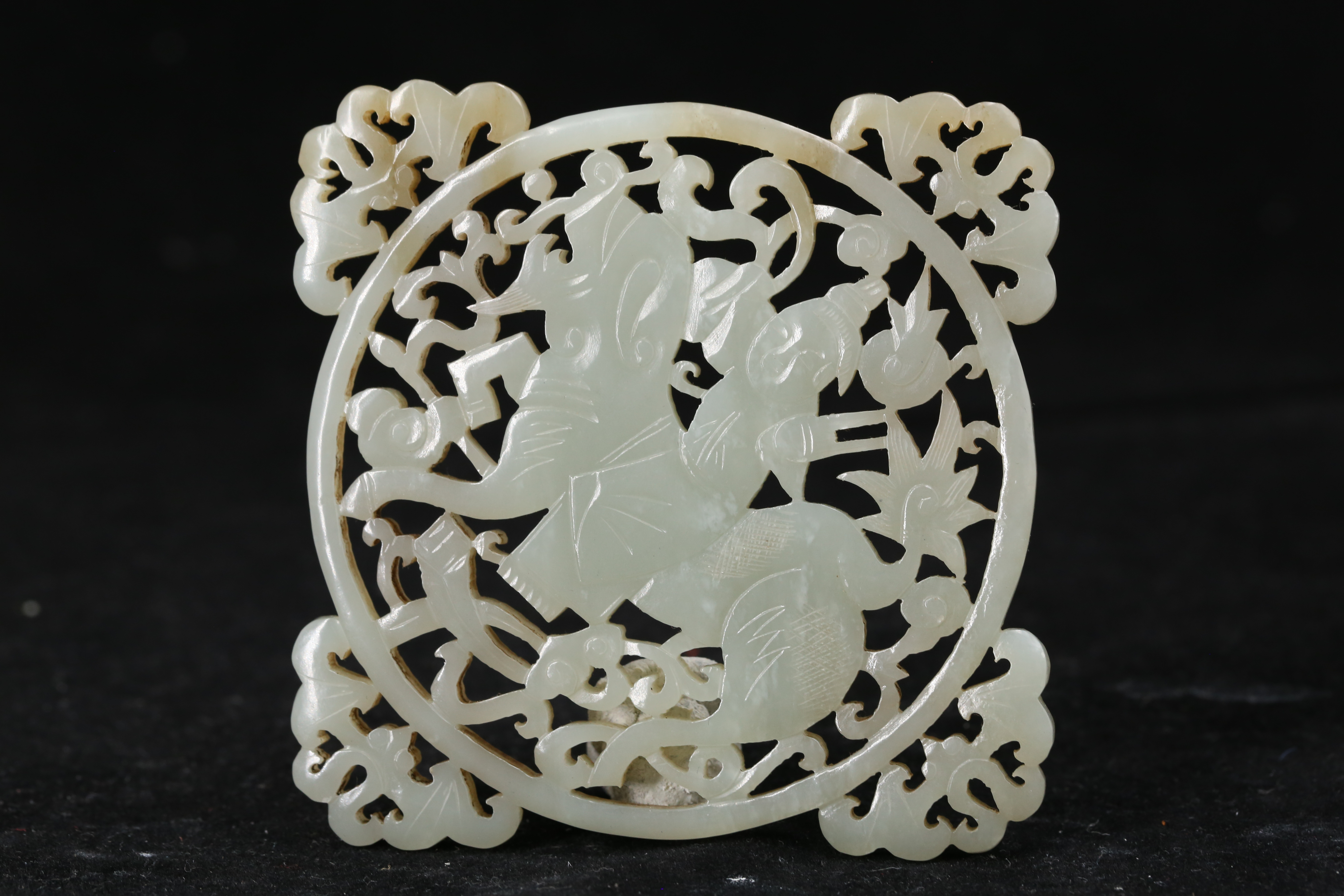 2155 白玉透雕麒麟送子纹出廓蝠纹佩