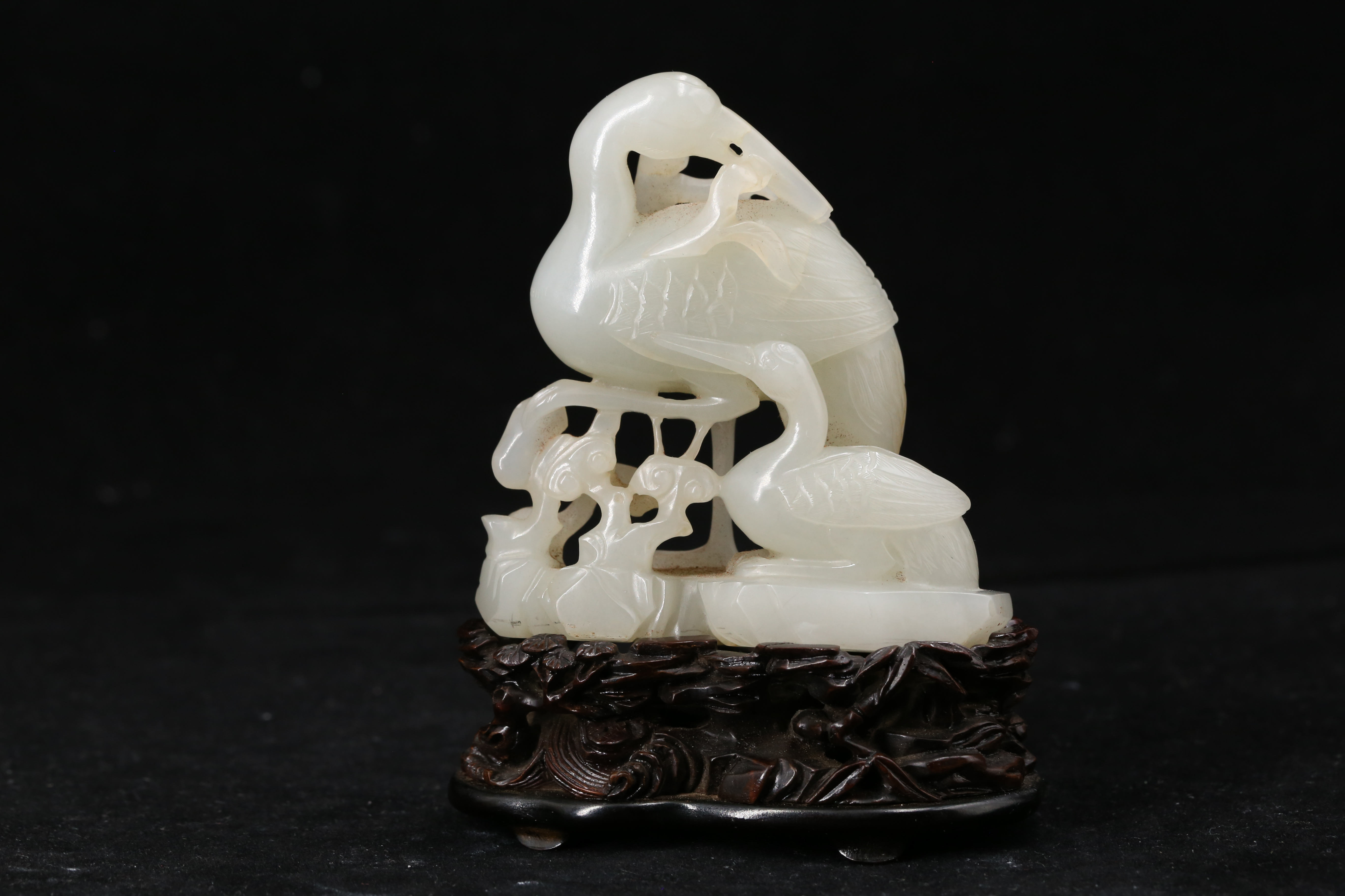 2156 白玉籽料鹤衔灵芝摆件